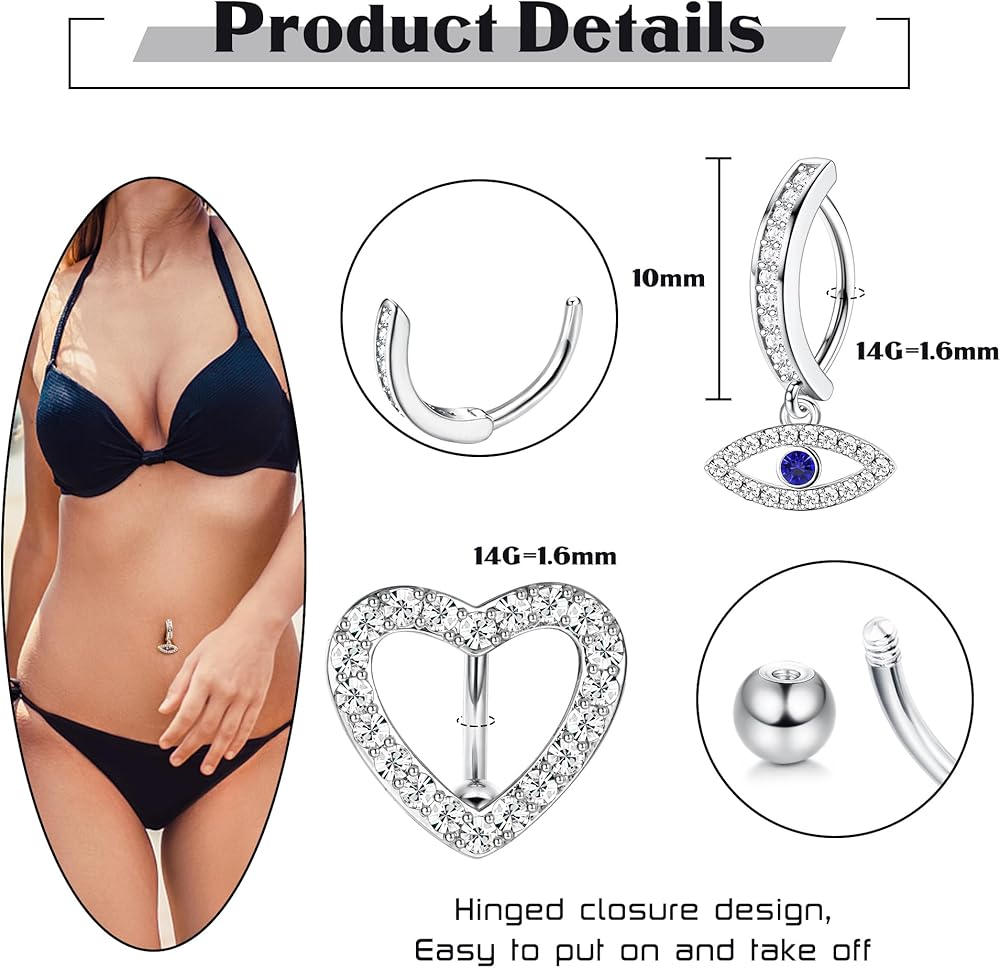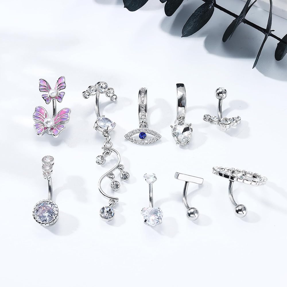 【مجموعة حلقات زر البطن】سوف تحصل على 9 أنماط مختلفة من حلقات زر البطن: حلقات زر البطن الفرس، حلقات زر البطن العكسية، حلقات زر البطن المتدلية، حلقات زر البطن الشريرة، حلقات زر البطن على شكل فراشة، حلقات زر البطن على شكل قلب. مجموعة متنوعة أنماط مختلفة من ثقب البطن يمكن أن تتناسب مع ملابسك المختلفة.