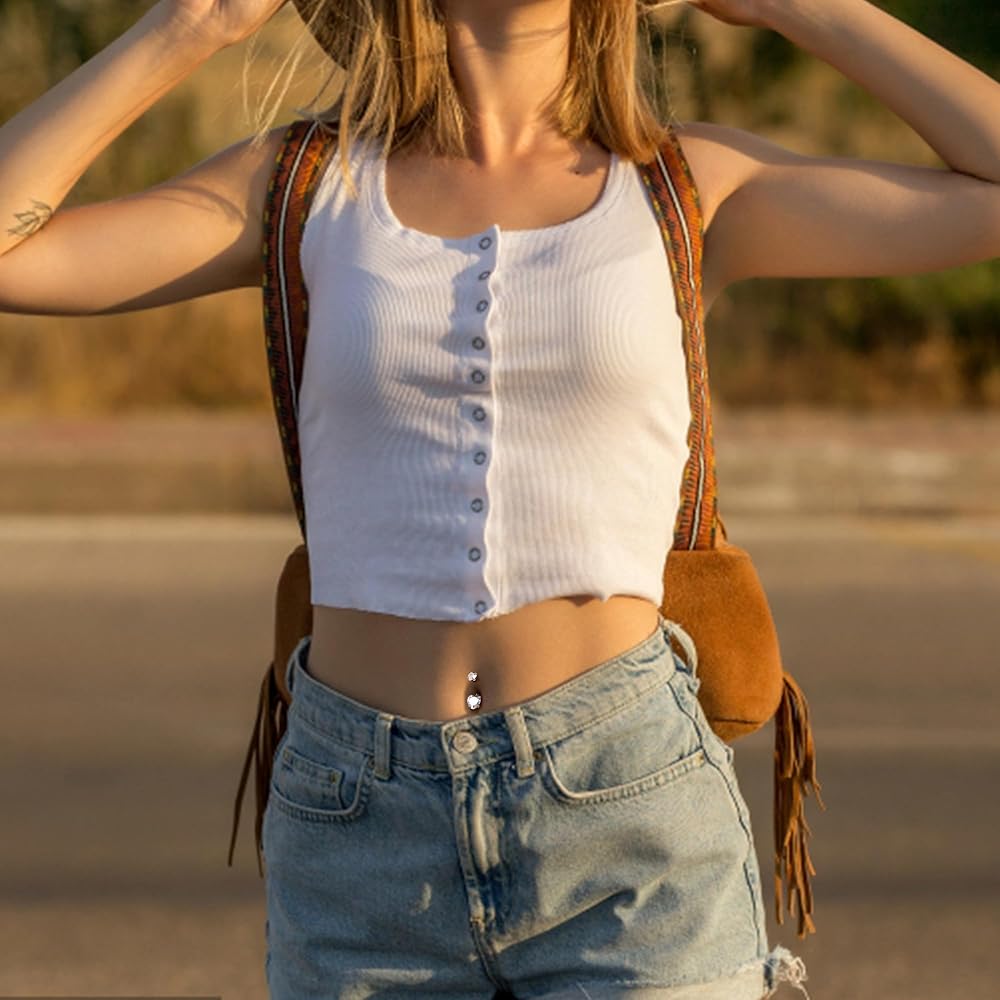 【المقاس】مقياس ثقب السرة: 14 جرام (1.6 مم)، الطول: 0.39 بوصة (10 مم)، الحجم القياسي يناسب معظم الأشخاص.