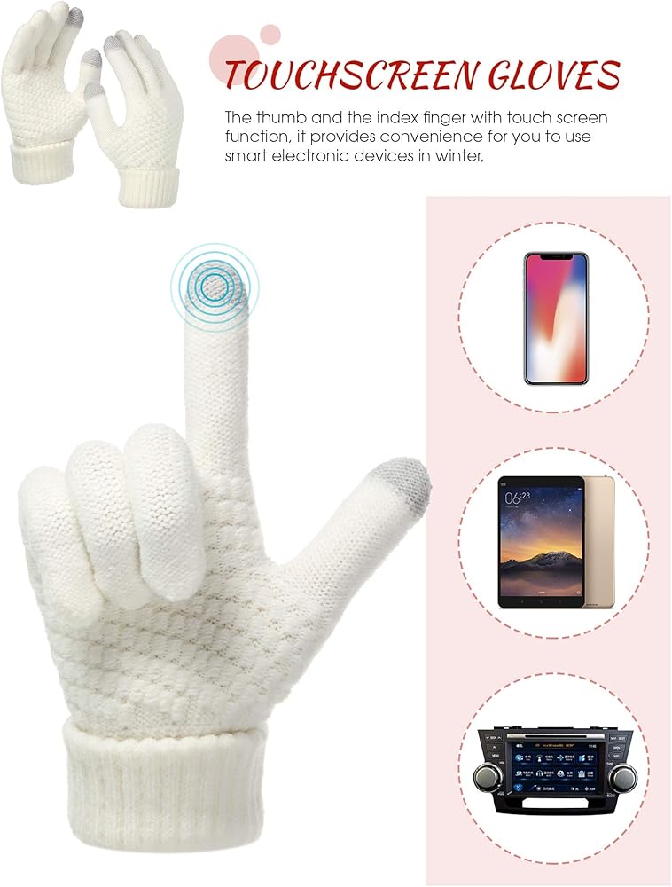 • تشمل العبوة: سوف تحصل على قطعة واحدة من القبعة المحبوكة، وزوج واحد (قطعتين) من قفازات شاشة اللمس المحبوكة، وقطعة واحدة من الوشاح المنسوج وقطعة واحدة من عصابة رأس لتدفئة الأذن، إنها إكسسوارات شتوية دافئة جيدة، ومناسبة للارتداء للحفاظ على رأسك، الرقبة والأذنين والخدين والأصابع من الرياح الباردة