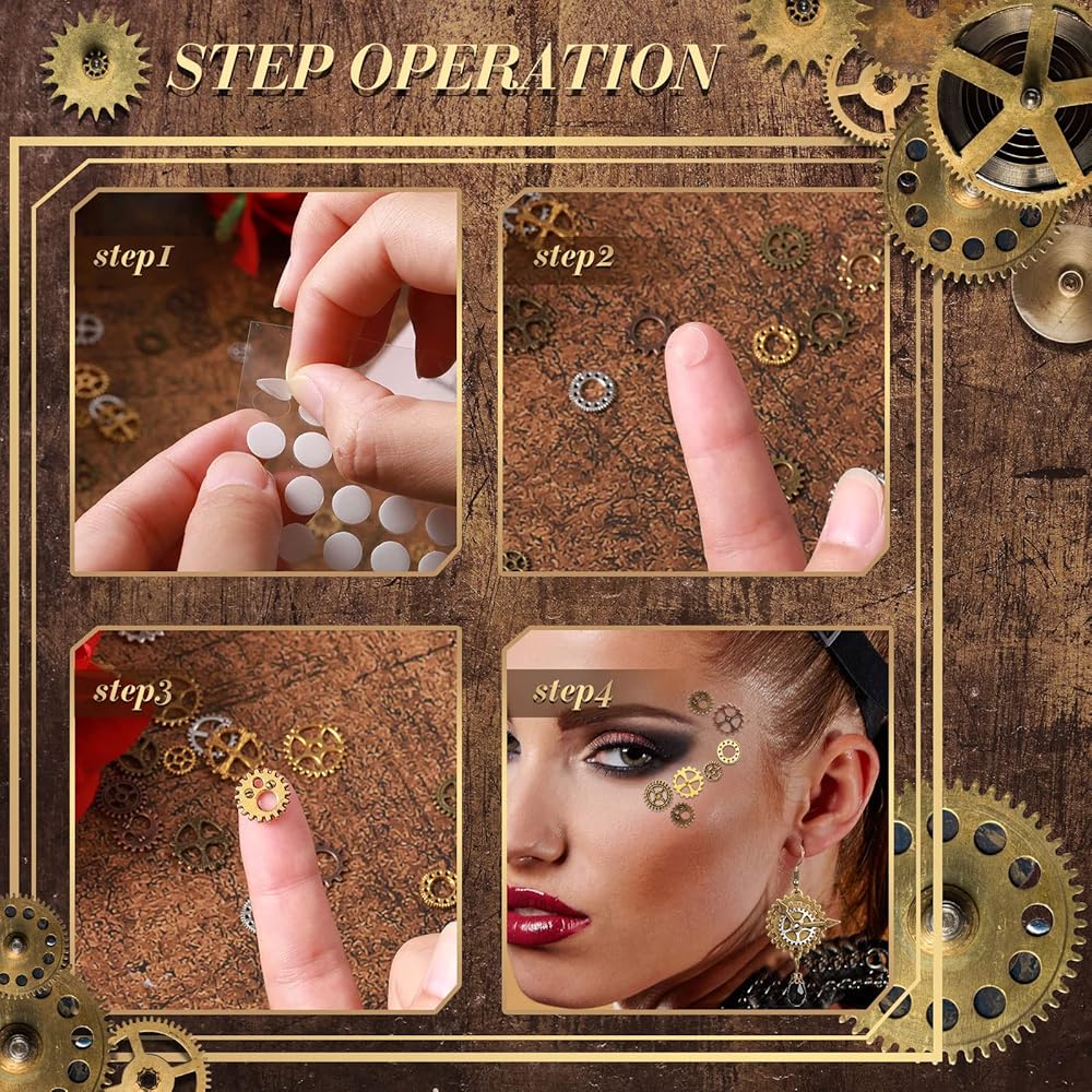 كمية كافية للمقاضاة: سوف تحصل على زوج واحد من نظارات Steampunk، وقطعة واحدة من قلادة العتاد، وزوج واحد من أساور المعصم Steampunk وزوج واحد من أقراط العتاد، و54 قطعة من ملصقات العين القوطية ذات الألوان المتنوعة DIY في عبوة واحدة، كمية كافية لإرضائك متطلباتك الديكورية المختلفة للحفلات، مما يجعلك تجذب انتباه الآخرين بسهولة