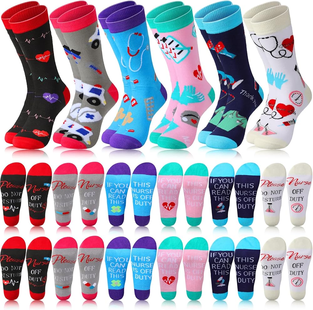 جيور 18 زوجًا من جوارب الممرضة للنساء، جوارب طاقم مبتكرة إذا كنت تستطيع القراءة This Nurse Is off Duty جوارب مرحة مبتكرة للتمريض والكريسماس، جوارب للجنسين للممرضات في أعياد الميلاد والكريسماس، طازجة