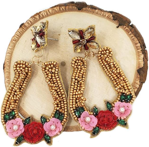 • أقراط على شكل حدوة حصان غربية مطرزة بالخرز