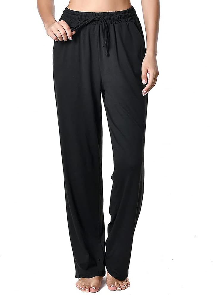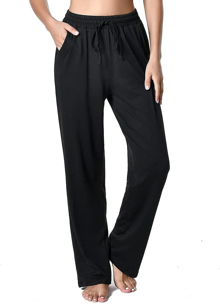 سراويل نسائية برباط، سراويل رياضية واسعة الساق لليوجا، سراويل مريحة فضفاضة ومستقيمة مع جيوب