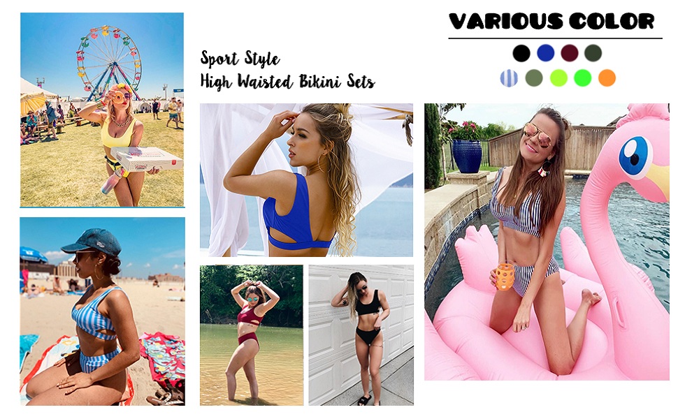 - بيكيني عالي الخصر: جزء سفلي بيكيني عالي الخصر، جزء علوي بيكيني بنمط رياضي للنساء، بدلة السباحة اللطيفة هذه جيدة لإظهار مظهرك المسطح.