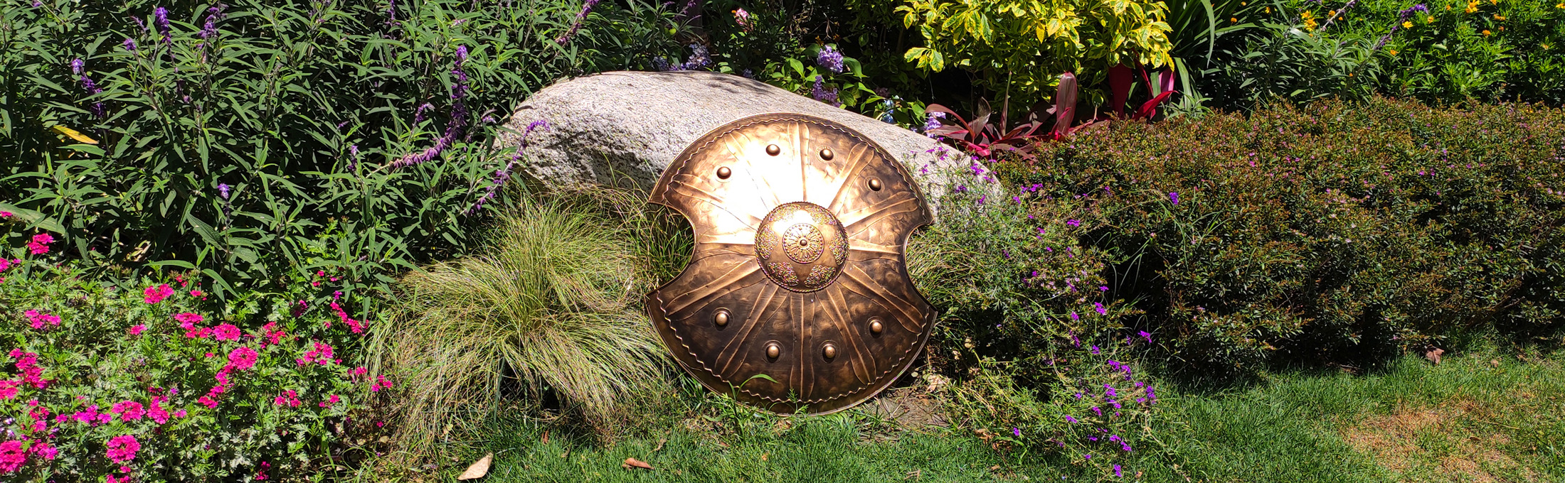مستوحى من المحاربين اليونانيين القدماء من تروي. تم استخدام هذا الدرع من قبل المحارب اليوناني الأسطوري أخيل أثناء معركته على رمال طروادة.