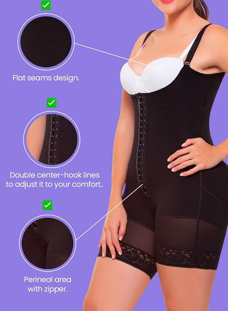 المميزات: مشد منتصف الساق مع خطين من الخطافات، ظهر شبه مغطى، سحاب عجاني. مشد ما بعد الولادة وما بعد الجراحة والاستخدام اليومي.