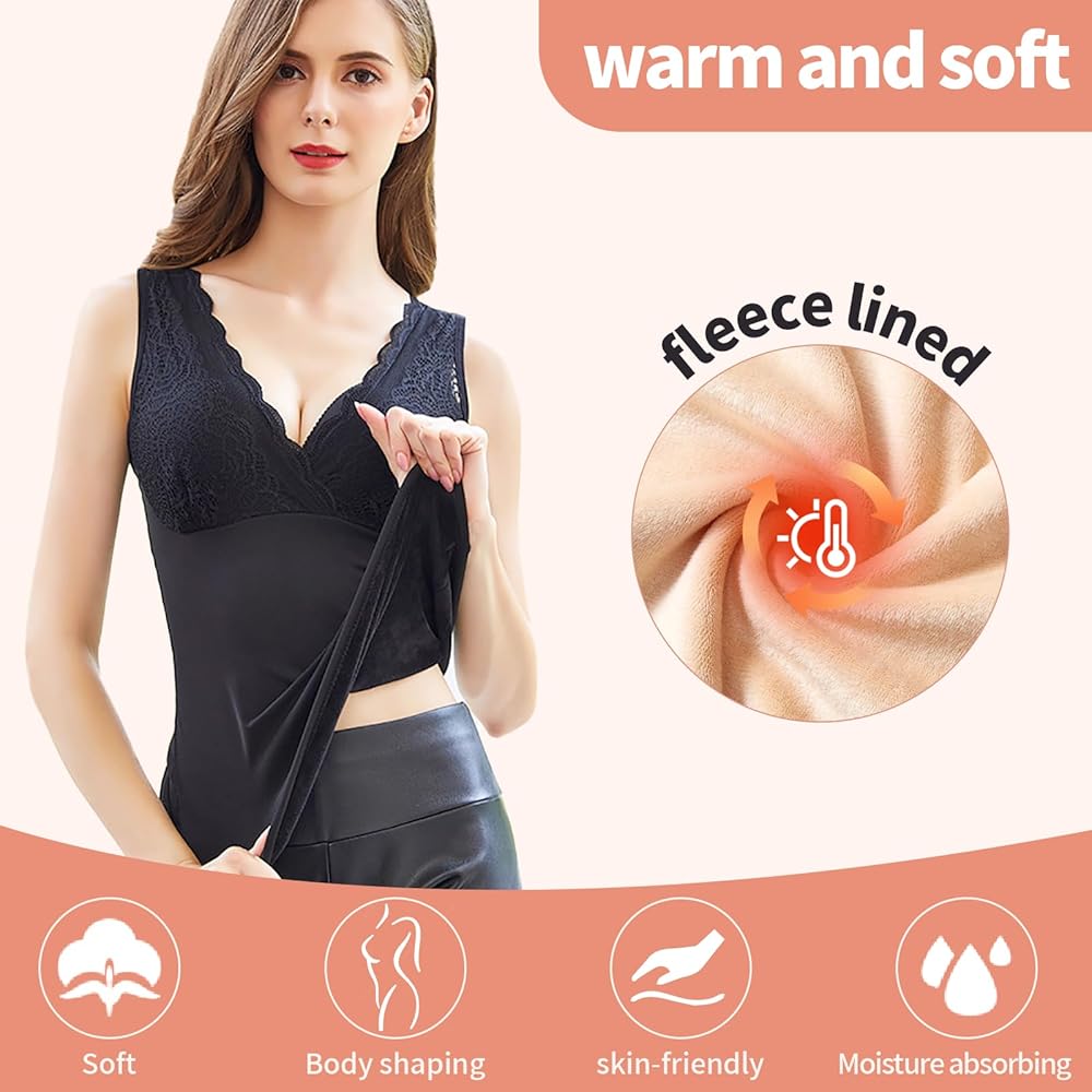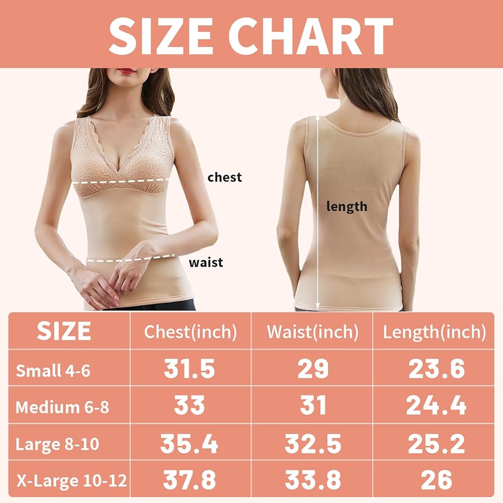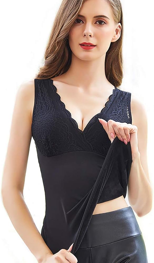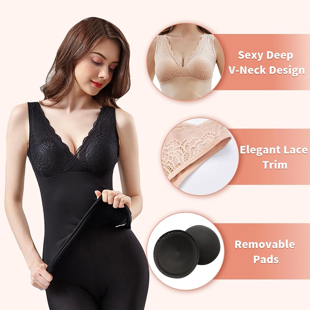 • التصميم: ملابس داخلية حرارية بدون أكمام من الدانتيل مع رقبة على شكل حرف V مبطنة جذابة