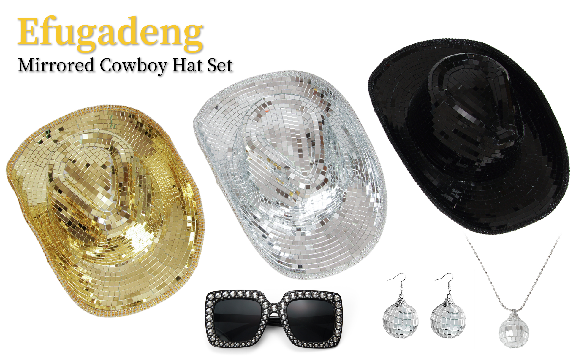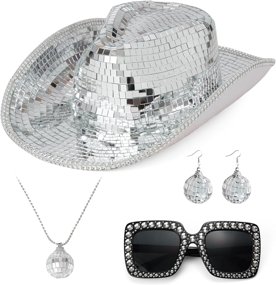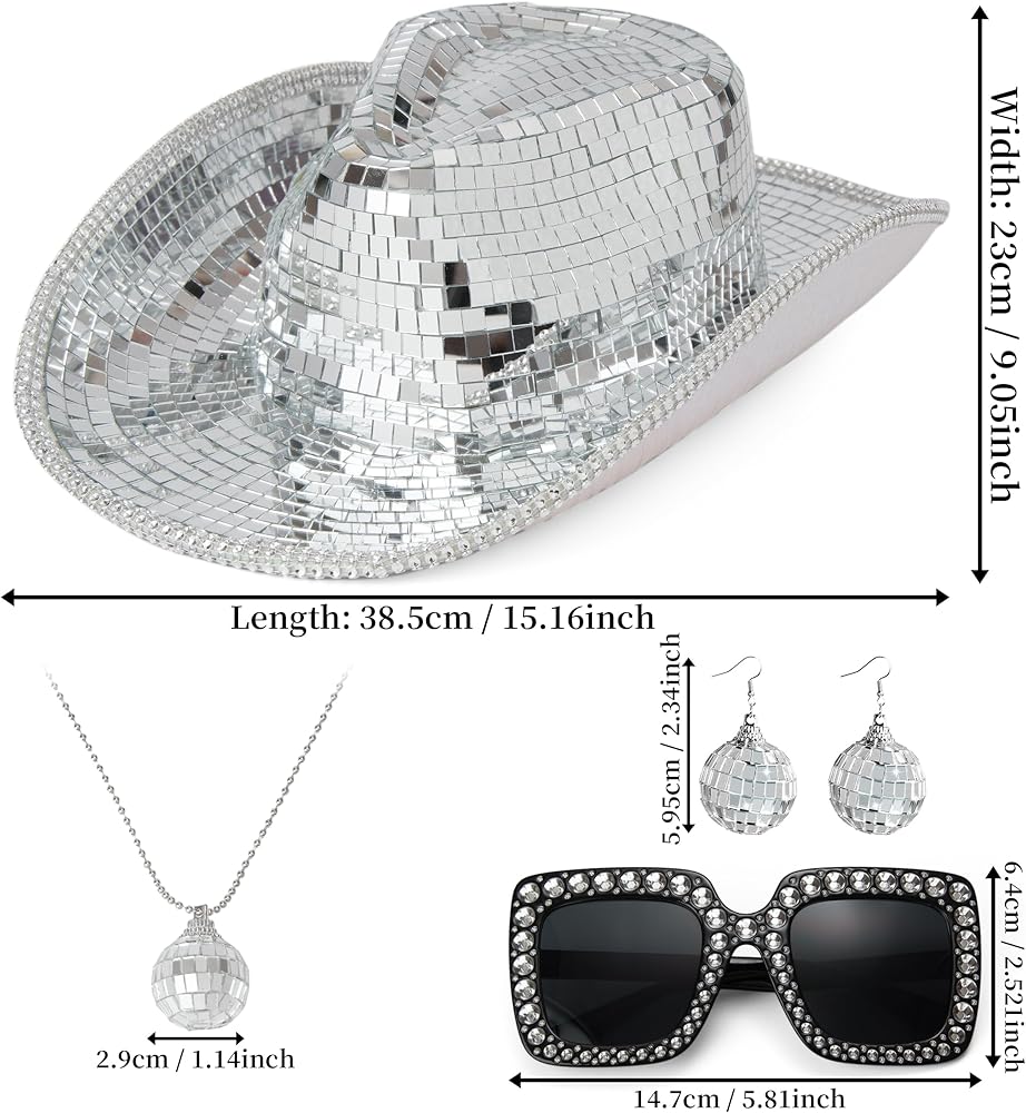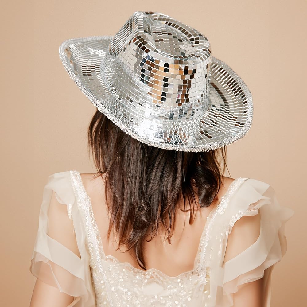 • 【قبعة رعاة البقر ذات الكرة المرآة】إكسسوار مثالي للحفلات! مرآة زجاجية لامعة على شكل قبعة رعاة البقر تعكس الضوء الجميل، مما يخلق تأثير كرة الديسكو المذهل الذي سيبهر الجميع من حولك.