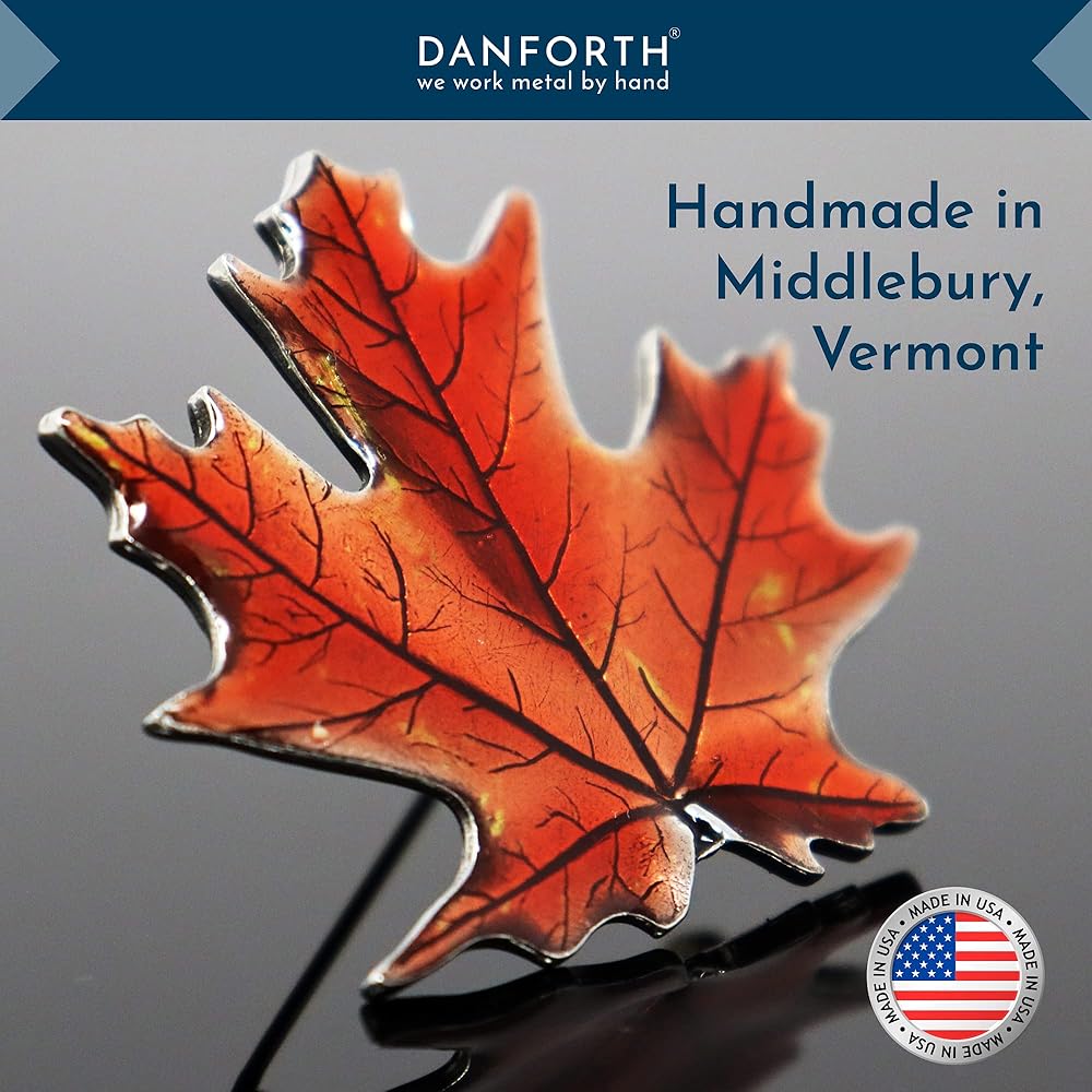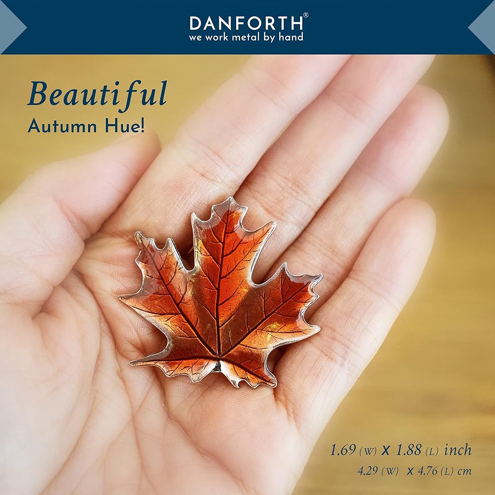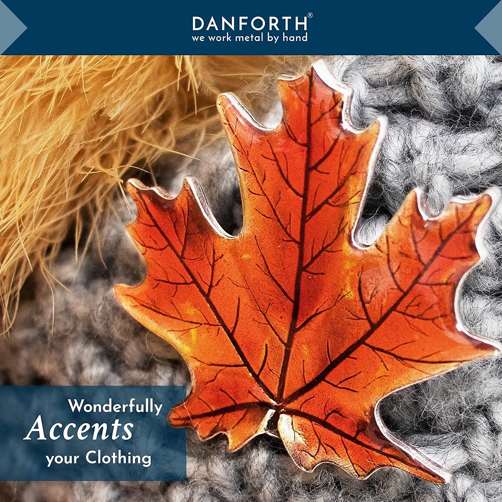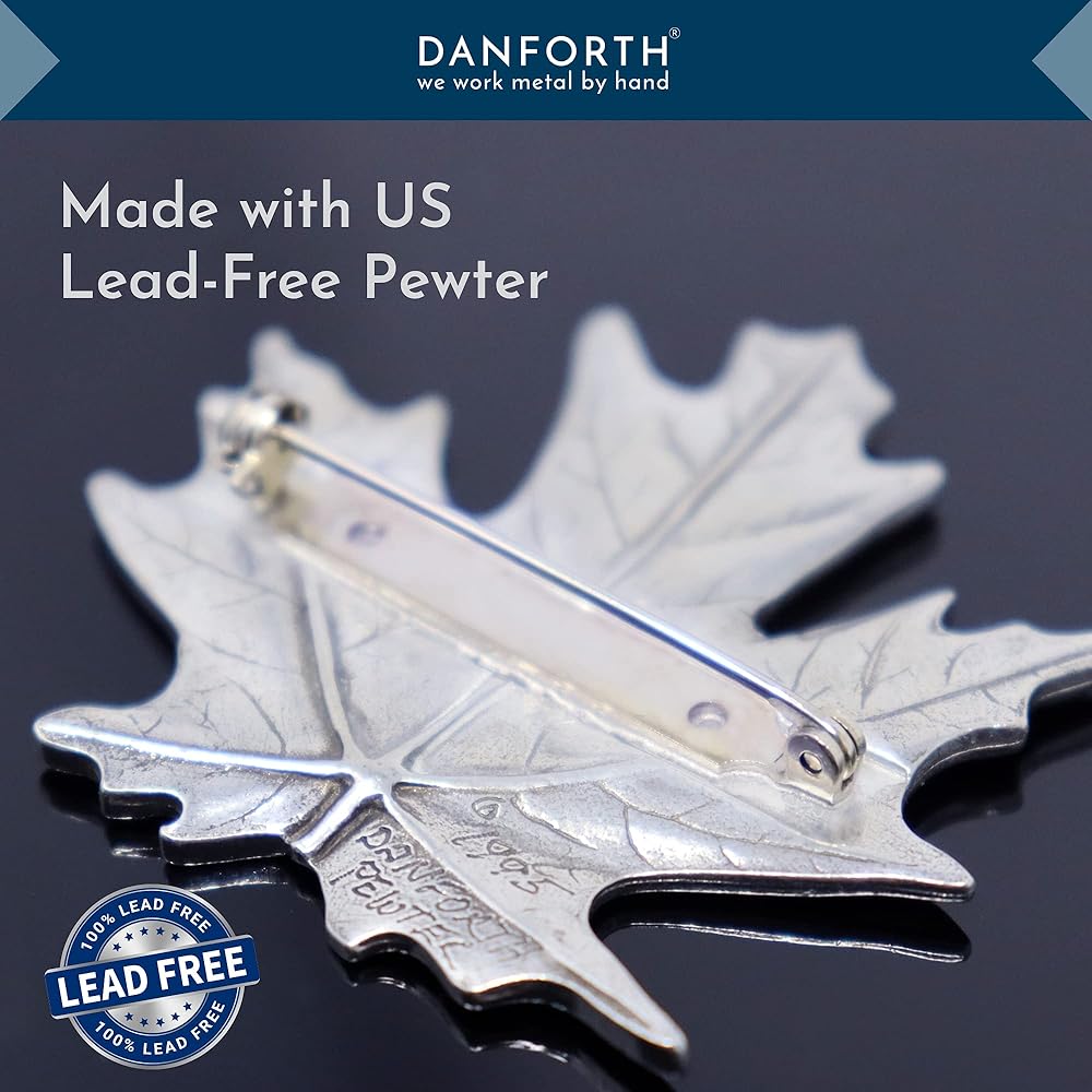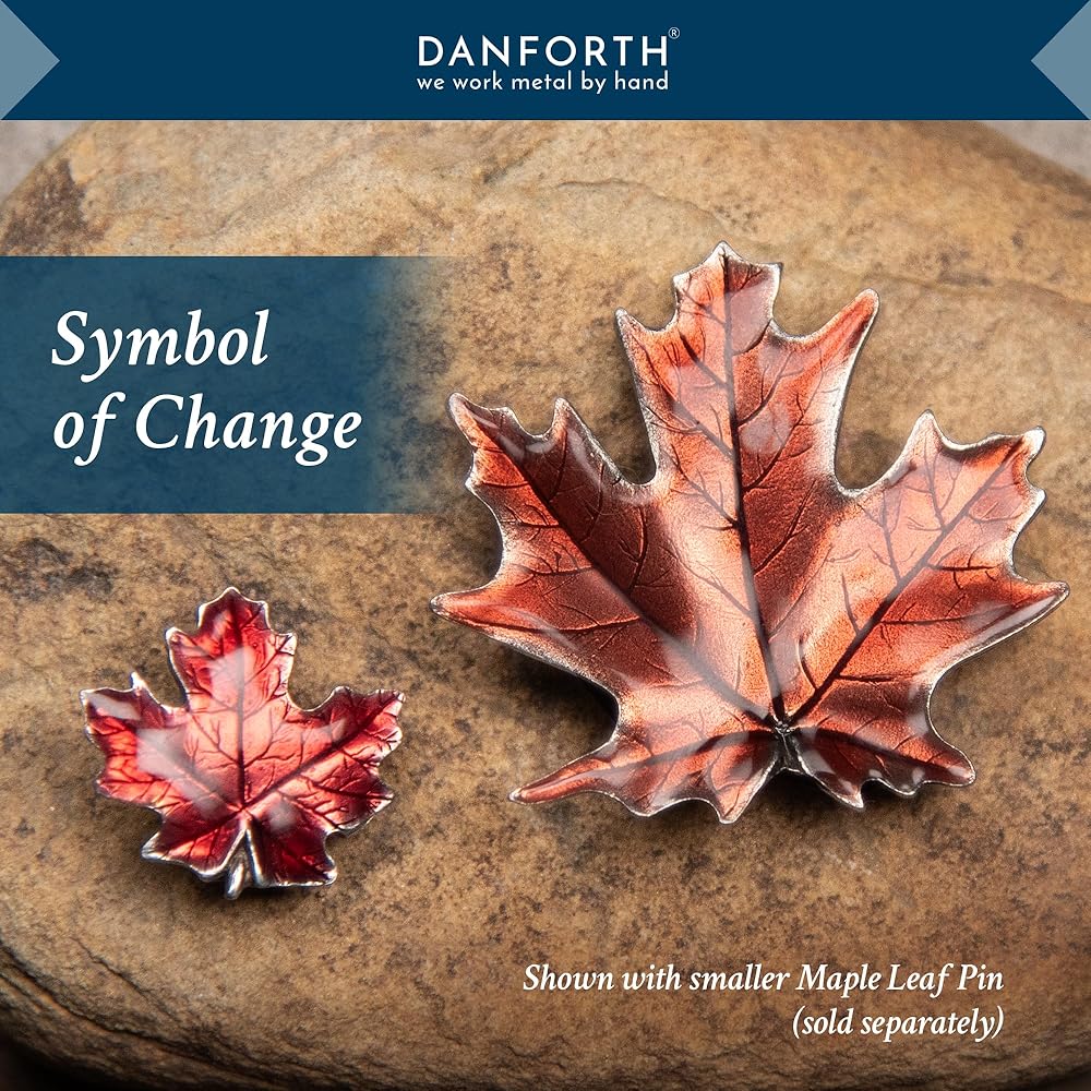 دانفورث - دبوس بروش على شكل ورقة القيقب / الخريف - بيوتر - 4.4 سم - مصنوع يدويًا - صنع في الولايات المتحدة الأمريكية, 2" wide