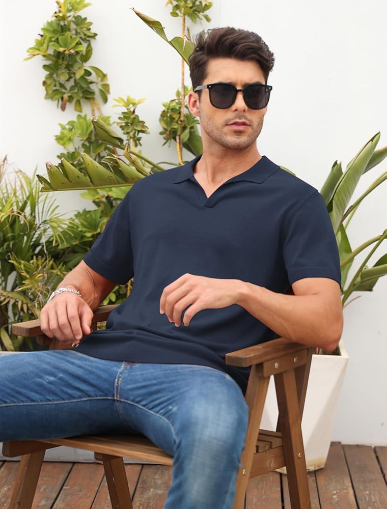 السمات: تم تصميم هذا القميص ذو الأكمام القصيرة من بولو برقبة على شكل حرف V، وياقة طية صدر كلاسيكية. يضمن في الوقت نفسه مظهرك الأنيق وحرية الحركة.