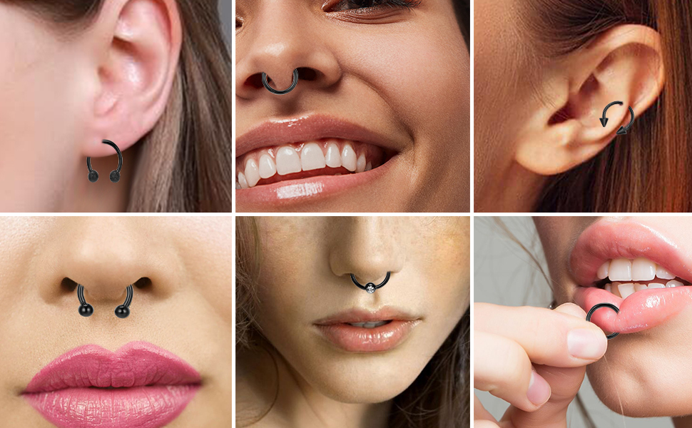 استخدامات متعددة - يمكن ارتداء حلقة الحاجز الأنفية المصنوعة من الستانلس ستيل هذه كحلقة للشفاه للنساء، مجوهرات ثقب الشفاه، مجوهرات ثقب الأنف، أقراط من الستيل الجراحي، أقراط غضروف نصف حلقة، ثقب الأذن، حلقة حلزونية، أقراط زنمة، حلقة أنف بلون زهري نيون، مجوهرات ثقب حلزونية، أقراط على شكل حدوة حصان، مجوهرات حاجز الأنف وغيرها من مجوهرات ثقب الجسم للنساء والرجال.