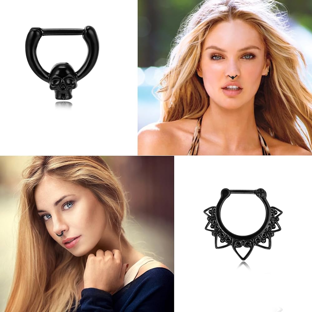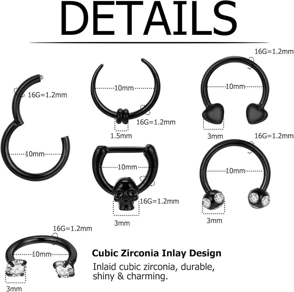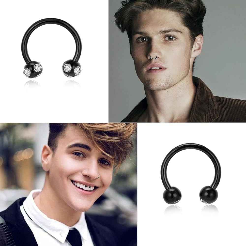 المادة - مجوهرات حاجز الأنف هذه بوزن 16 غرام مصنوعة من الستانلس ستيل عالي الجودة بحرفية مصقولة، سطح أملس، لا تسبب الحساسية، خالية من الرصاص والنيكل، ويمكن ارتداؤها وخلعها بسهولة.