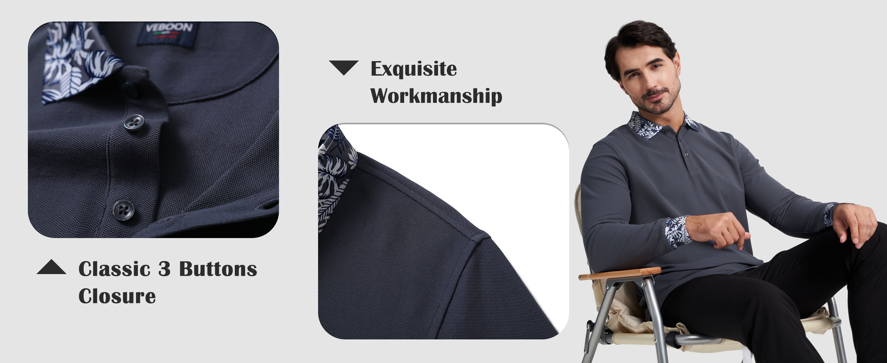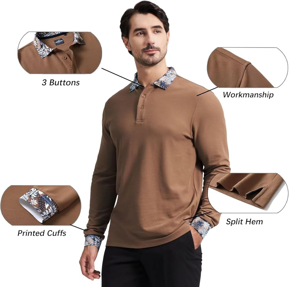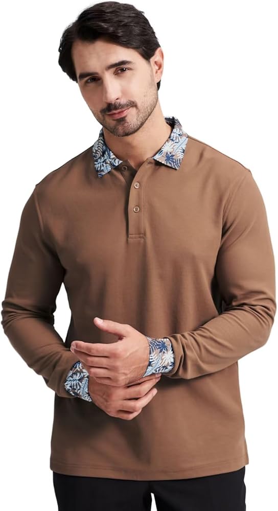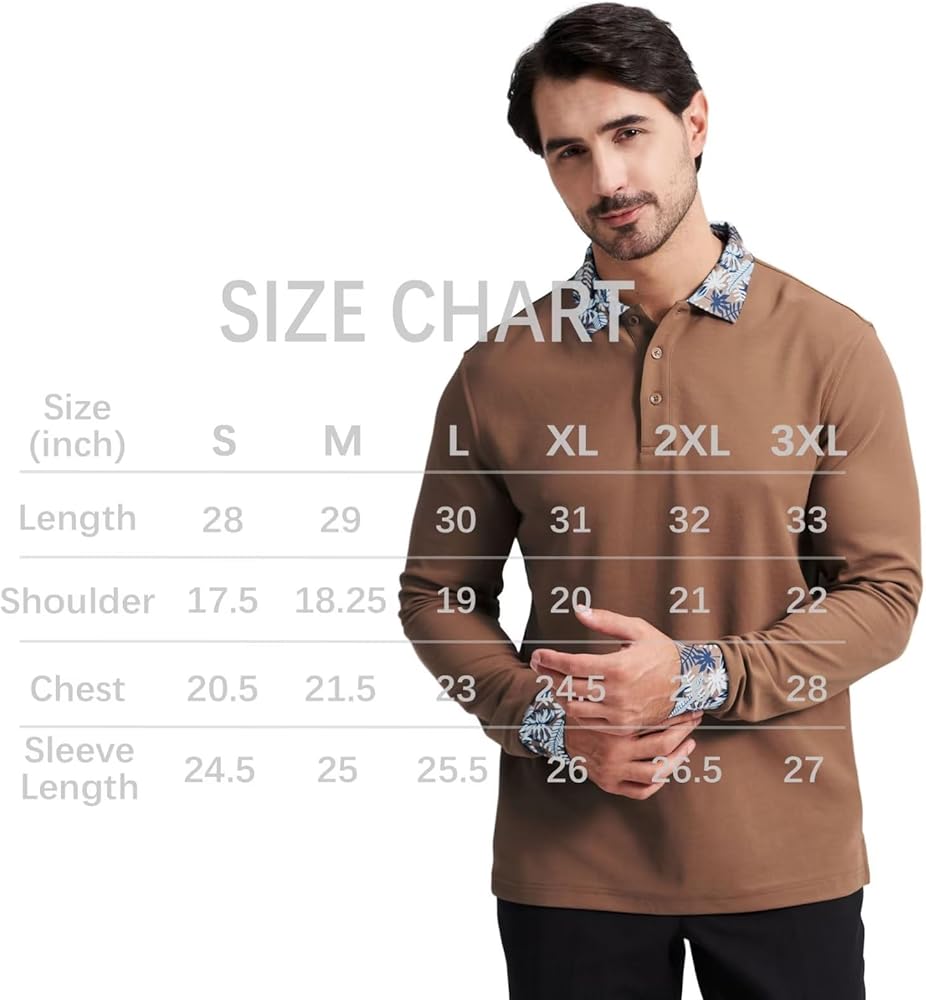 تصميم خاص: قمصان بولو للرجال بأكمام طويلة بتصميم عادي بثلاثة أزرار وطباعة فريدة على الأساور والياقة تعكس بعضها البعض للحصول على مظهر جمالي. قميص بولو الأنيق هذا يجعلك رائعًا وأنيقًا.