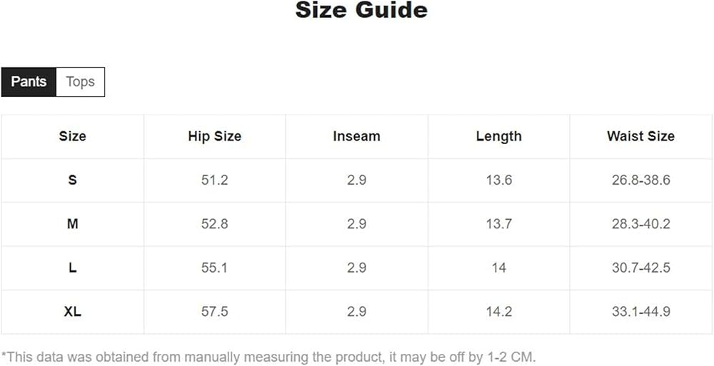 قياسات المنتج: صغير: مقاس الورك: 51.2 بوصة، درزة البنطال الداخلية: 2.9 بوصة، الطول: 13.6 بوصة، مقاس الخصر: 26.8-38.6 بوصة