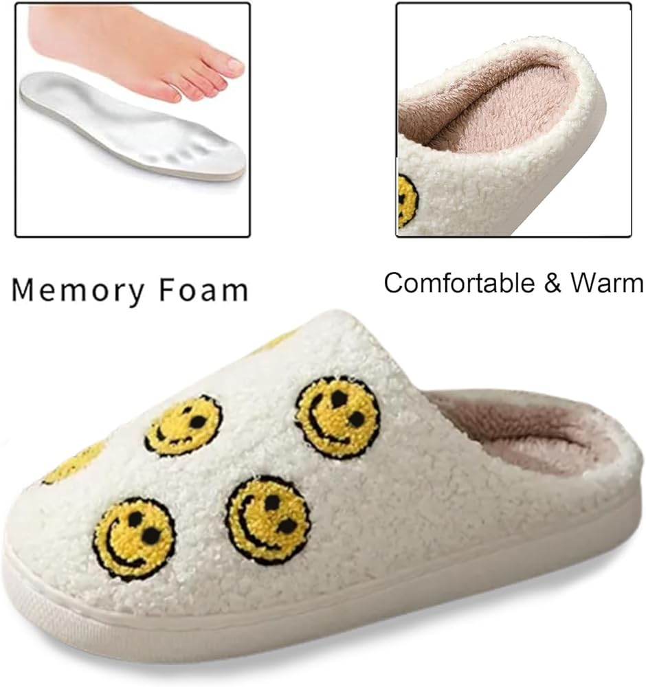 ✨【تصميم وجه مبتسم قديم】شباشب منفوشة للنساء بنمط وجه مبتسم مضحك، تمنحك مزاجًا سعيدًا. بطانة ناعمة ومريحة تلتف قدميك بشكل لطيف وتوفر أقصى قدر من الدفء والراحة.