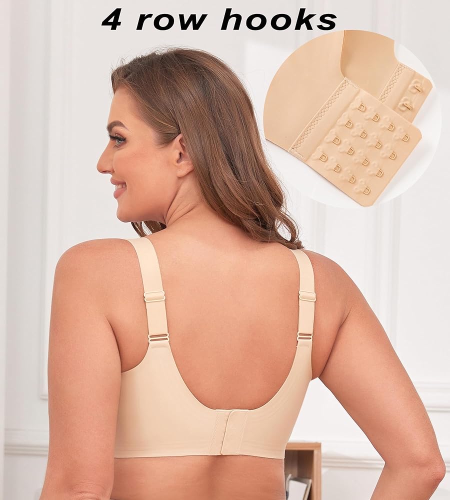 【حمالة الصدر بدون خياطة مع 4 خطافات خلفية】يمكن أن توفر حمالات الصدر ذات التغطية الكاملة للنساء مع 4 خطافات المزيد من الدعم وإخفاء الدهون في الظهر. نسيج ناعم يناسب جسمك بشكل طبيعي. حمالة الصدر التي شيرت هي حمالة صدر مثالية لجميع الملابس الداخلية