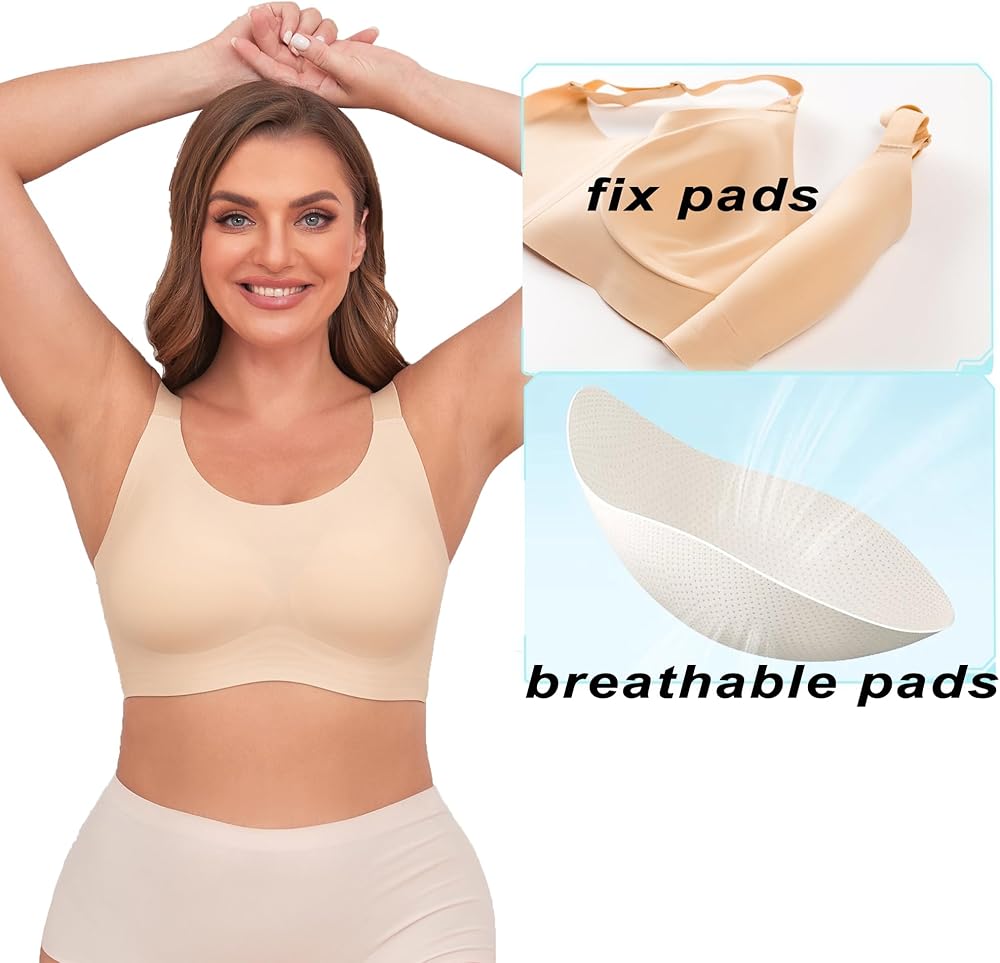 【حمالة صدر لاسلكية للنساء】حمالات الصدر النسائية التي لا تحتوي على أسلاك داخلية مصنوعة من النايلون والألياف لدنة، والنسيج الناعم والأملس يوفر ملاءمة مريحة. تمنحك حمالة الصدر المرنة الرائعة بدون خياطة شعورًا مريحًا "بالكاد هناك"، 24 ساعة لحمالة الصدر اليومية