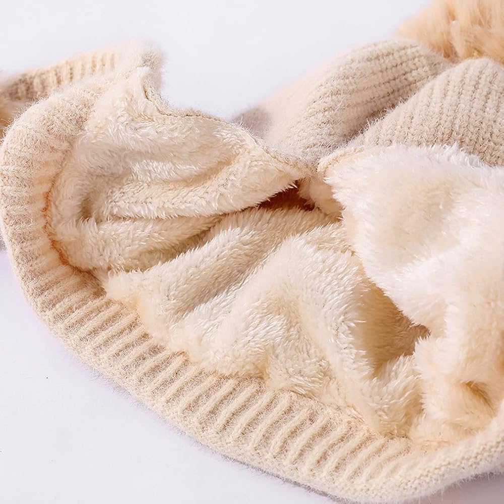 كرات كبيرة جميلة ولطيفة تتميز بتفاصيل أعلى القبعة. هذه القبعة الصغيرة تحافظ على دفء رأسك وأذنيك. ابقِ دافئًا طوال الوقت، رائع للأنشطة الخارجية وللتدفئة اليومية.