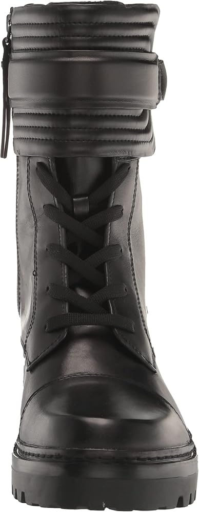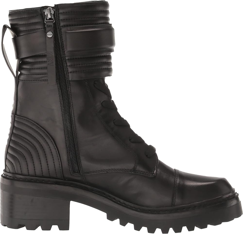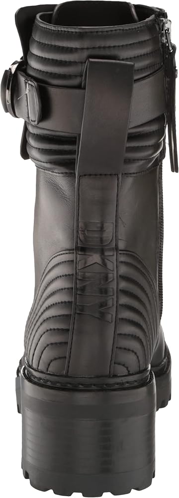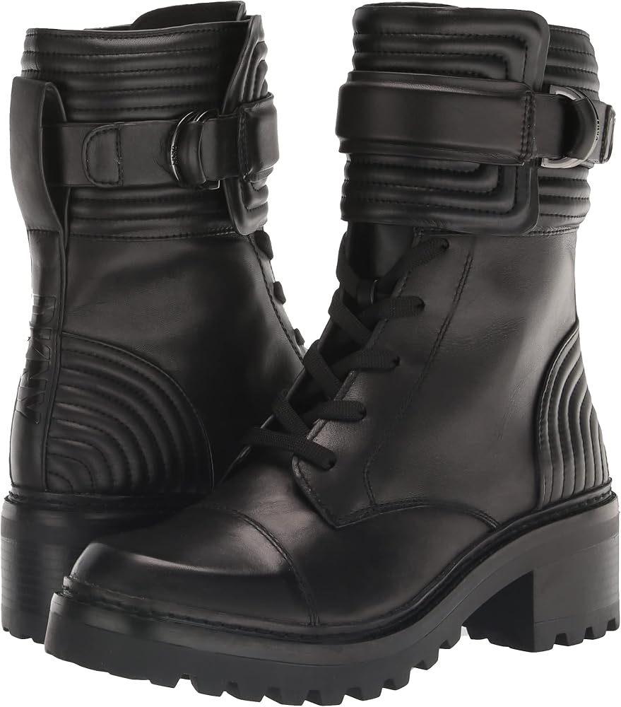 حذاء Basia النسائي من DKNY هو حذاء قتالي متين مصنوع من الجلد الناعم ونعل متين مع إبزيم