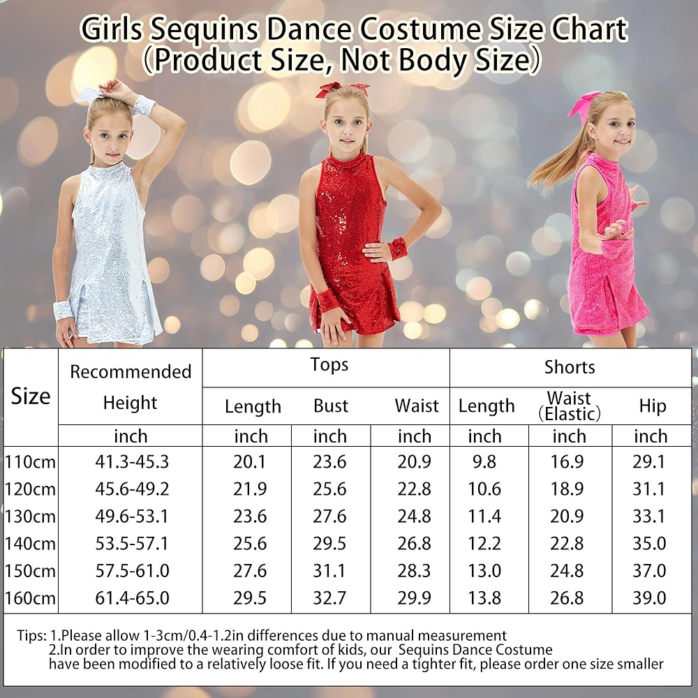 مقاس زي الرقص للفتيات: بعد أبحاث السوق، من أجل تلبية احتياجاتك بشكل أفضل، قمنا بتحسين حجم أزياء الرقص هذه ذات الترتر. إذا كنت بحاجة إلى مقاس أكثر إحكامًا، فيرجى طلب مقاس أصغر بدرجة واحدة. يرجى قراءة جدول المقاسات بعناية قبل الشراء