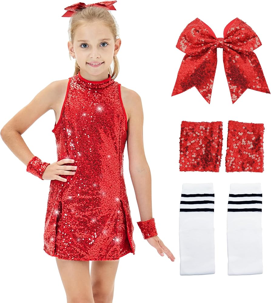 حزمة أزياء رقص الجاز للفتيات: تتضمن مجموعة أزياء الهيب هوب للفتيات بلوزة بدون أكمام بحاشية مقسمة، وشورت خصر مرن، وواقيات للمعصم، وجوارب وإكسسوارات للشعر، والتي يمكن ارتداؤها كزي أو بشكل منفصل. ارتداء أزياء الرقص الخاصة بنا يجعل أطفالك مميزين في عرض الرقص