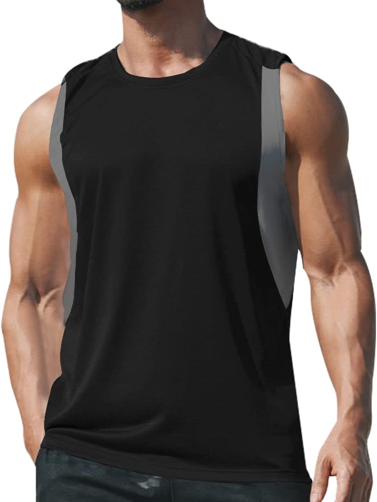 تصميم فريد: بلوزة بدون أكمام رياضية بدون أكمام للرجال، بألوان متباينة، رقعة، رقبة دائرية، لياقة بدنية، كاجوال وعصري. بلوزة بدون أكمام أساسية بلونين متباينين هي قطعة لا غنى عنها لهذا الصيف والربيع.