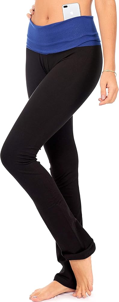 ★ سراويل يوجا قابلة للطي فوق الحذاء للنساء مع جيب حزام خصر مخفي. حجم اضافي.