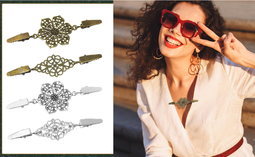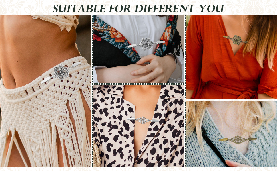 يمكن وضعه في ملابس مختلفة، مثل تثبيته على السترات أو الفساتين أو الياقة أو الشالات أو البلوزات أو الجاكت وما إلى ذلك.