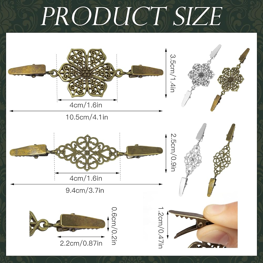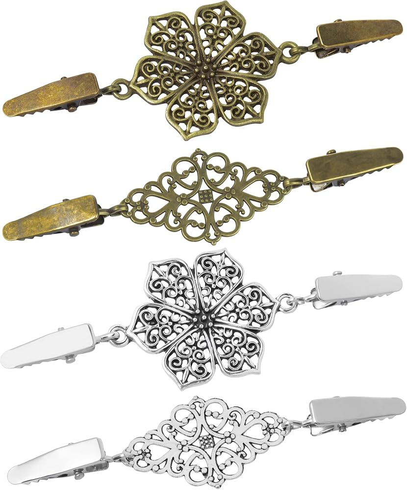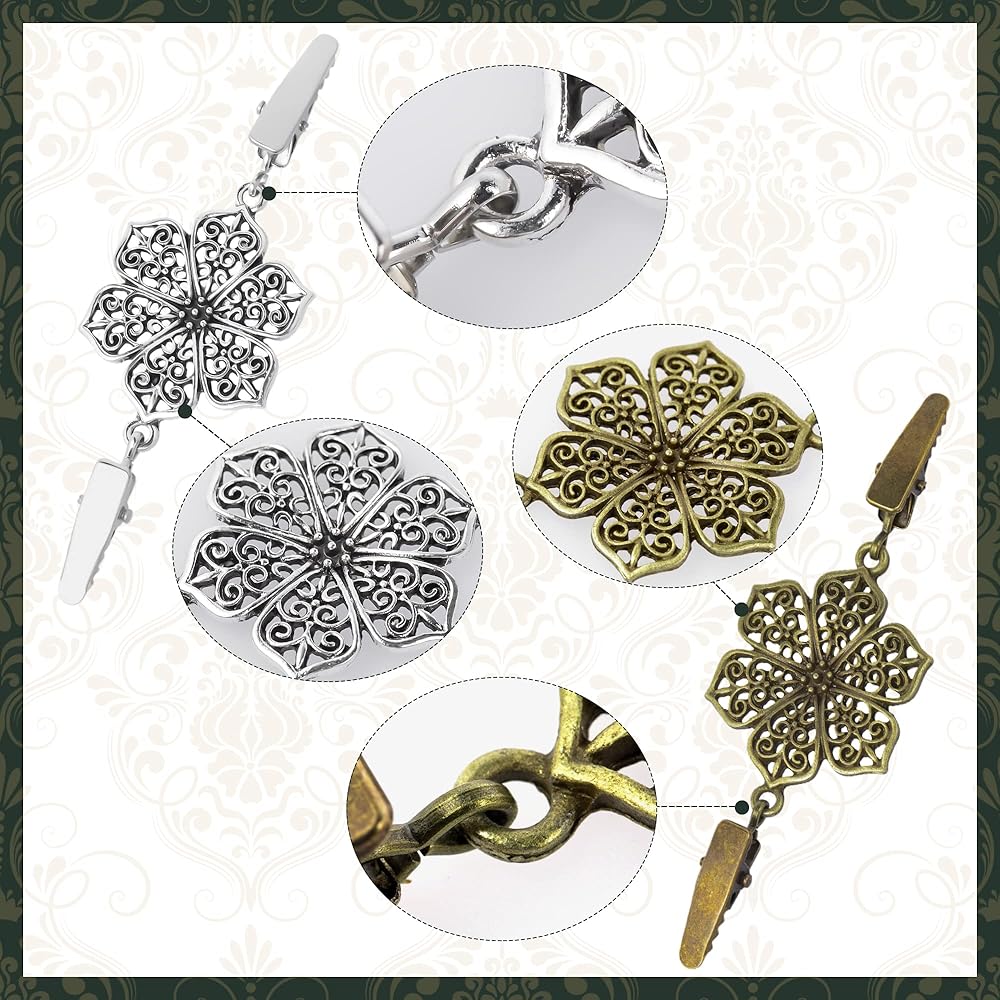 لون فضي عتيق مع زهرة لطيفة في وسط المشابك، فريد من نوعه وجميل للغاية.