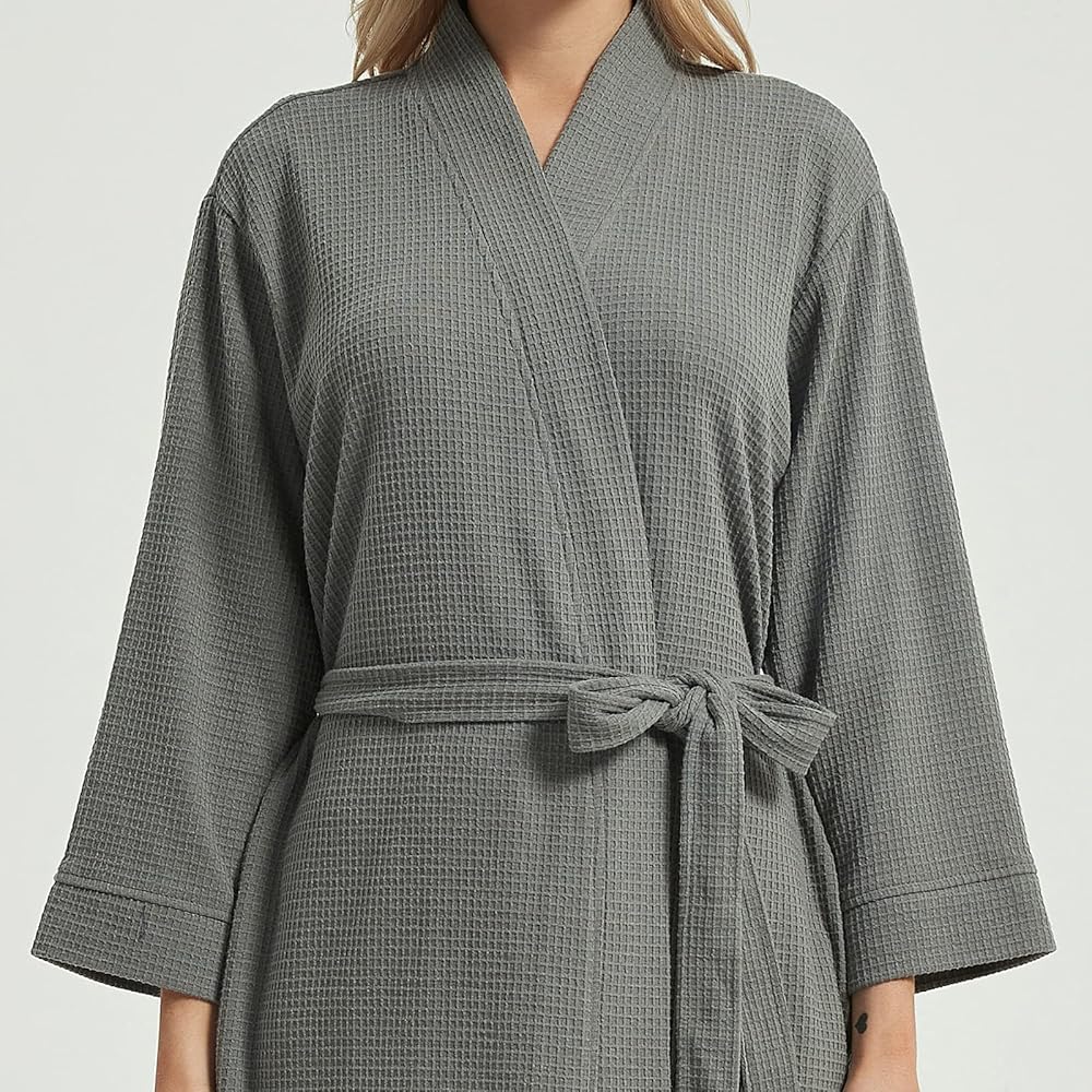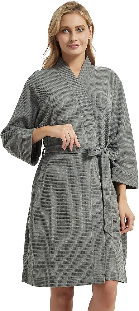 ناعم ومسامي: رداء حمام وافل خفيف الوزن، مصنوع من 60% قطن و40% بوليستر، مما يخلق لمسة ناعمة ولطيفة على بشرة المرأة الحساسة. يعمل بشكل جيد في امتصاص الرطوبة، مما يجعلك في حالة جافة ونظيفة. رداء منسوج للجنسين مع خط عنق كلاسيكي وأنيق على طراز الكيمونو وجيوب وحزام قابل للإزالة، مريح في الارتداء. لا يوجد خطر من ارتفاع درجة الحرارة، مناسب للربيع والصيف والخريف.