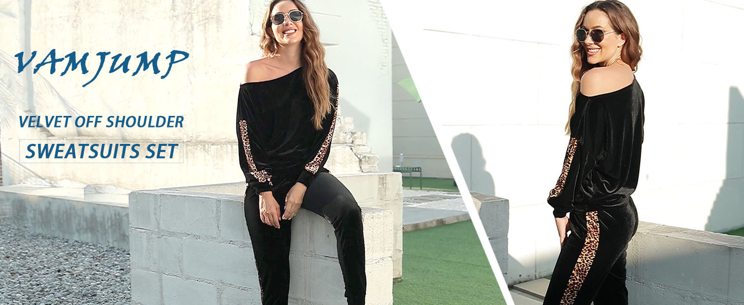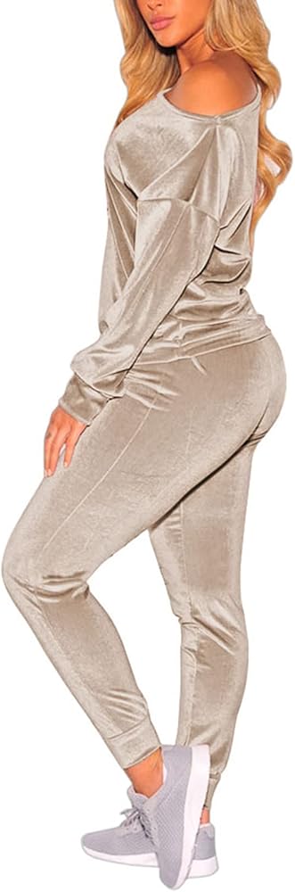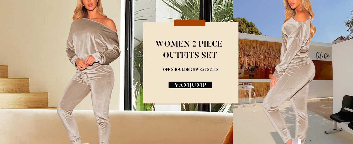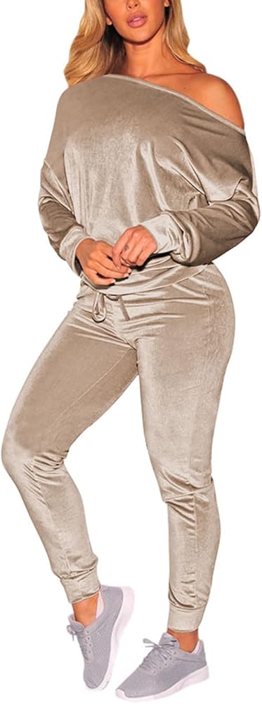 VamJump المرأة المخملية قبالة الكتف البلوز Jogger السراويل 2 قطعة ملابس رياضية
