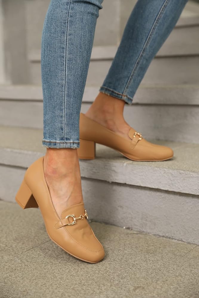 【المميزات】: حذاء نسائي بكعب منخفض يتميز بمقدمة مربعة كلاسيكية وتصميم مزين بسلسلة، والجزء العلوي من الجلد الصناعي، مما يوفر مظهرًا أنيقًا لمظهرك الأنيق. كعب عريض مكتنز مقاس 1.97 سم، يمنحك الارتفاع المناسب لشخصيتك، ويطيل منحنيات ساقك ليجعلك تبدين جذابة. كن حراً في التبديل بين الملابس غير الرسمية والحديثة.