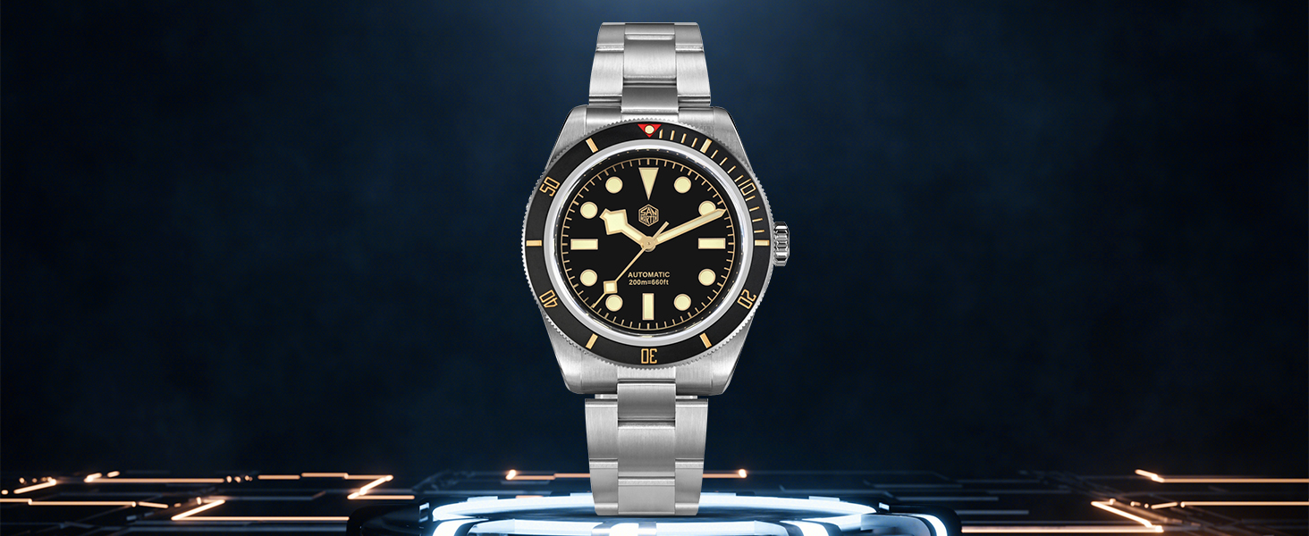 [𝗡𝗛𝟯𝟱 𝗠𝗼𝘃𝗲𝗺𝗲𝗻𝘁]: تعمل ساعات الغوص للرجال على حركة ميكانيكية يابانية NH35 أوتوماتيكية بالكامل، تردد 21600 مرة في الساعة (3 هرتز)، جهاز التوقف الثاني، تعبئة أوتوماتيكية ثنائية الاتجاه 24 جوهرة حركة ذاتية الملء، يمكن أن يستمر احتياطي الطاقة لمدة 41 ساعة.