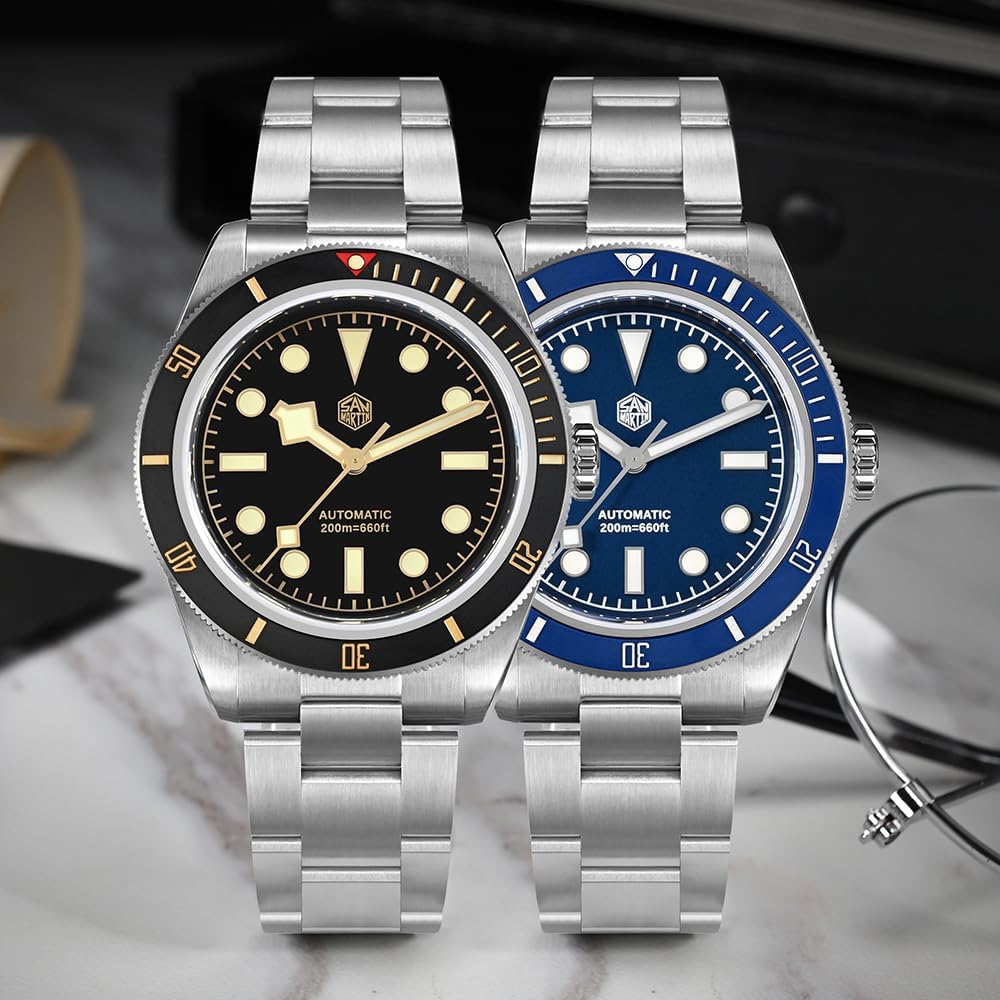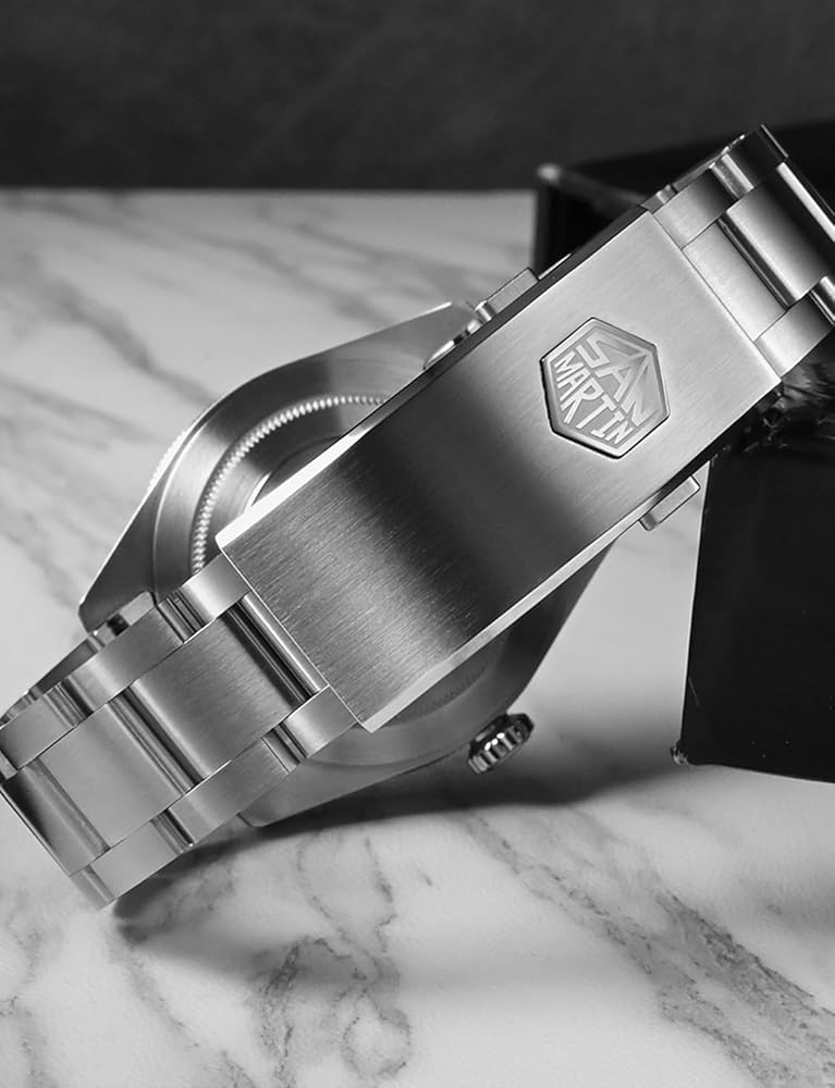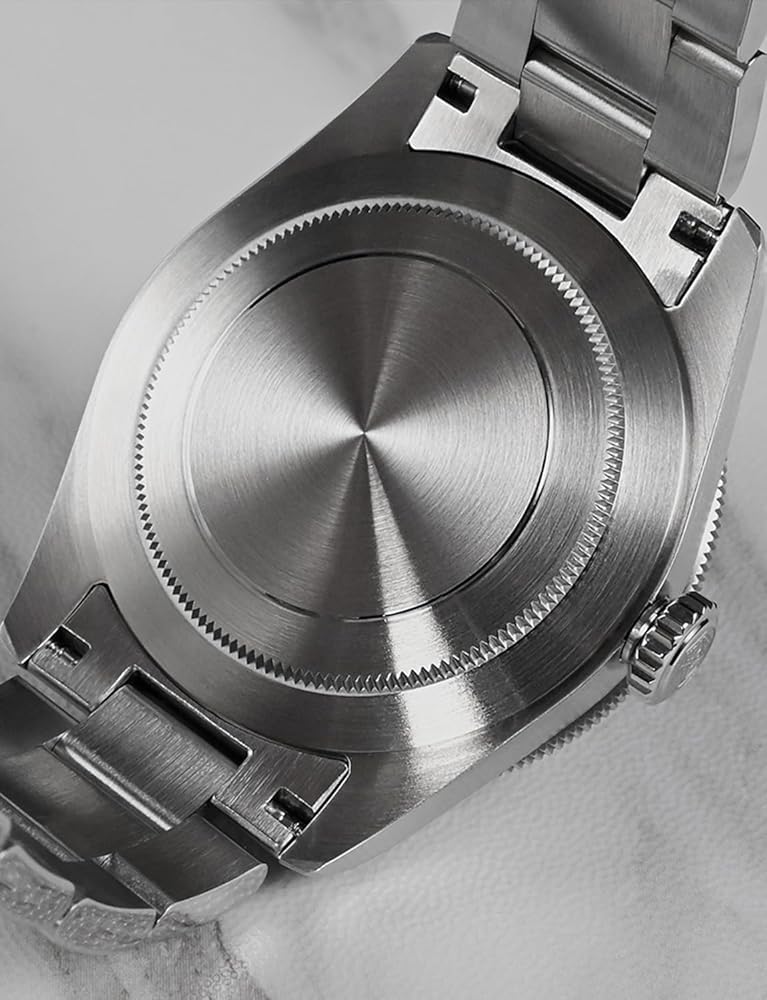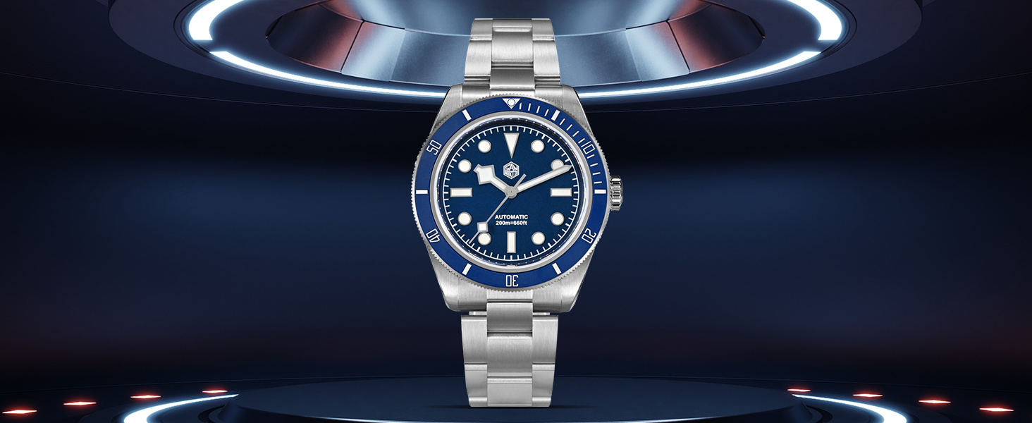 [𝗙𝗶𝗻𝗲 𝗪𝗼𝗿𝗸𝗺𝗮𝗻𝘀𝗵𝗶𝗽]: علبة الساعة الأوتوماتيكية لدينا مصنوعة من الفولاذ المقاوم للصدأ 316L ومرآة الساعة من كريستال الياقوت مع طلاء مضاد للانعكاس على السطح الداخلي. 120 نقرة على إطار سيراميك غير لامع دوار أحادي الاتجاه.