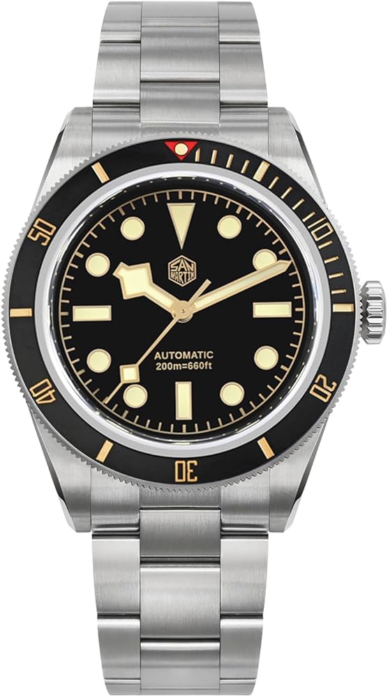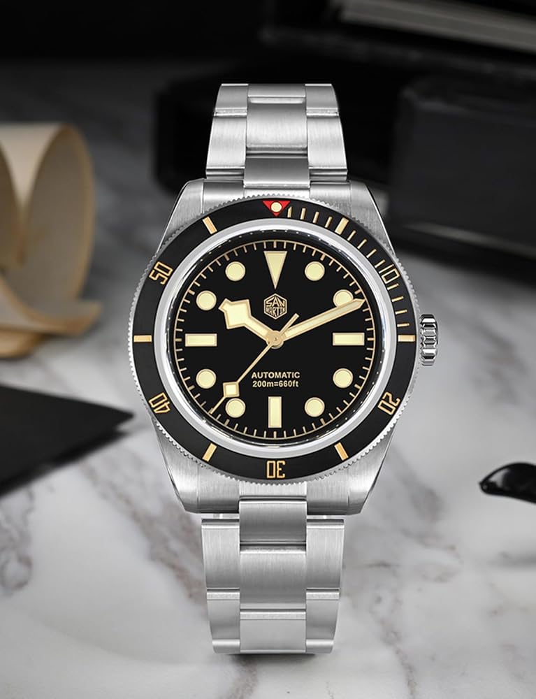 [𝟮𝟬𝟬 𝗠𝗲𝘁𝗲𝗿𝘀 𝗪𝗮𝘁𝗲𝗿 𝗥𝗲𝘀𝗶𝘀𝘁𝗮𝗻𝘁]: ساعة الغوص مقاومة للماء حتى عمق 200 متر (20ATM)، تاج ملولب لإغلاق محكم ضد الماء وحافة سيراميك أحادية الاتجاه لتخبرك بالوقت "تحت" بسهولة. مناسب للأنشطة البحرية الاحترافية والسباحة والرياضات المائية والارتداء اليومي.