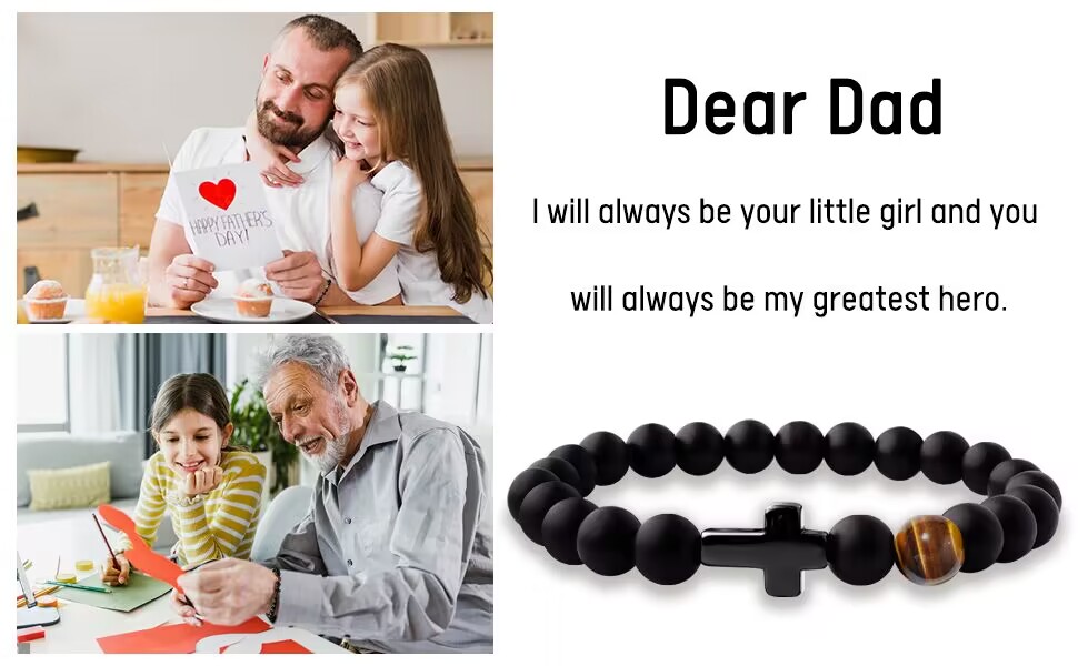 【هدايا الأب من الابنة】لقد أعطانا الأب حبًا غير أناني منذ ولادتنا. من الصعب التعبير عن حب الأب بالكلمات. الصليب هو رمز ثمين للإيمان والمحبة. أعطيته هذه الأساور لأشكر والدي الذي يدعمنا دائمًا، وأخبره "سأكون دائمًا فتاتك الصغيرة وستظل دائمًا بطلي الأعظم".