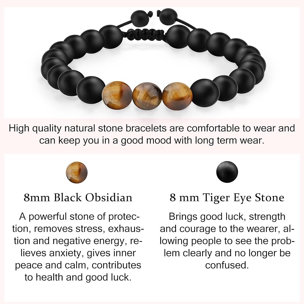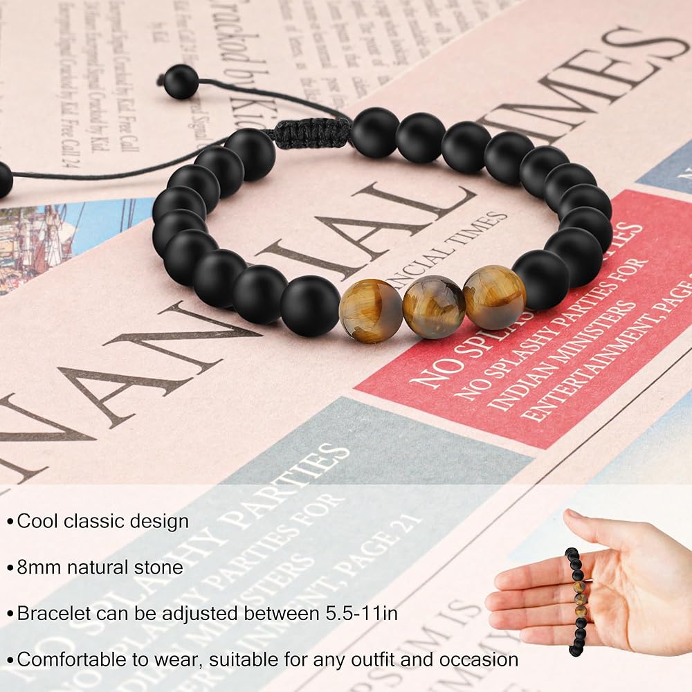【الخامة والمقاس】أساور رجالية مصنوعة من حجر العقيق الأسود الطبيعي مقاس 8 مم وحجر عين النمر والصليب. يتم توصيل الأساور بسلك مرن قوي ومتين، وسهل الارتداء والخلع؛ الطول الداخلي حوالي 7 بوصات، يناسب معظم معاصم الرجال. حجر العقيق الأسود الطبيعي وحجر عين النمر الثمين، مريح في الارتداء، حجر التوازن الذي يساعد على التخلص من التوتر عند ارتدائه لفترة طويلة، ويساعد على تخفيف التوتر ويجعلك تشعر بالسعادة، فهو هدية عيد ميلاد مثالية للرجال.