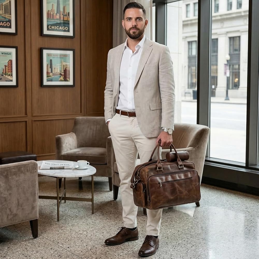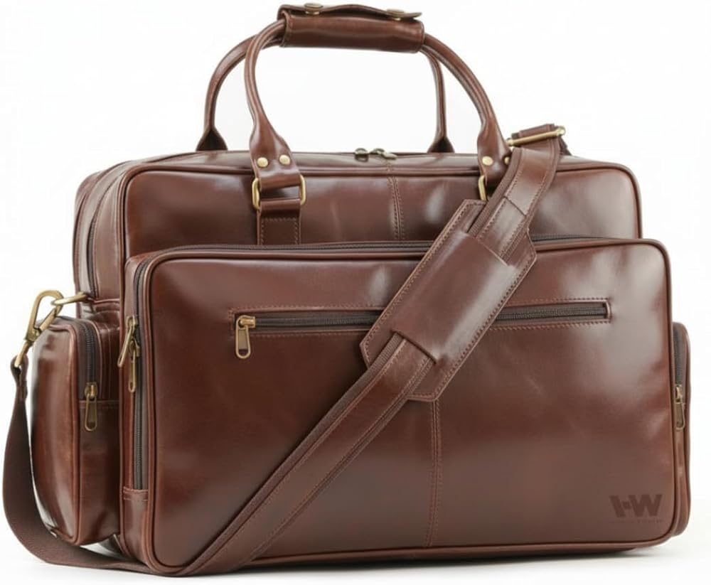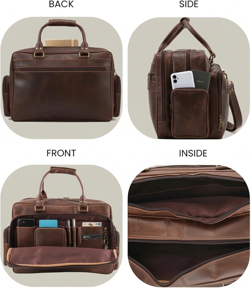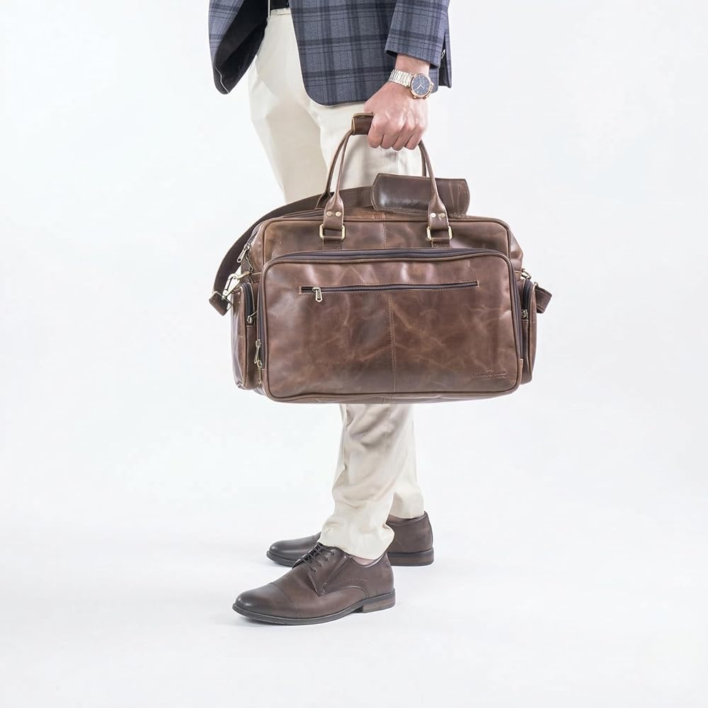 حقيبة جلدية كبيرة مصنوعة يدويًا من القماش الخشن للرجال "BossWell Office" تناسب كمبيوتر محمول مقاس 18 بوصة للسفر بغرض العمل