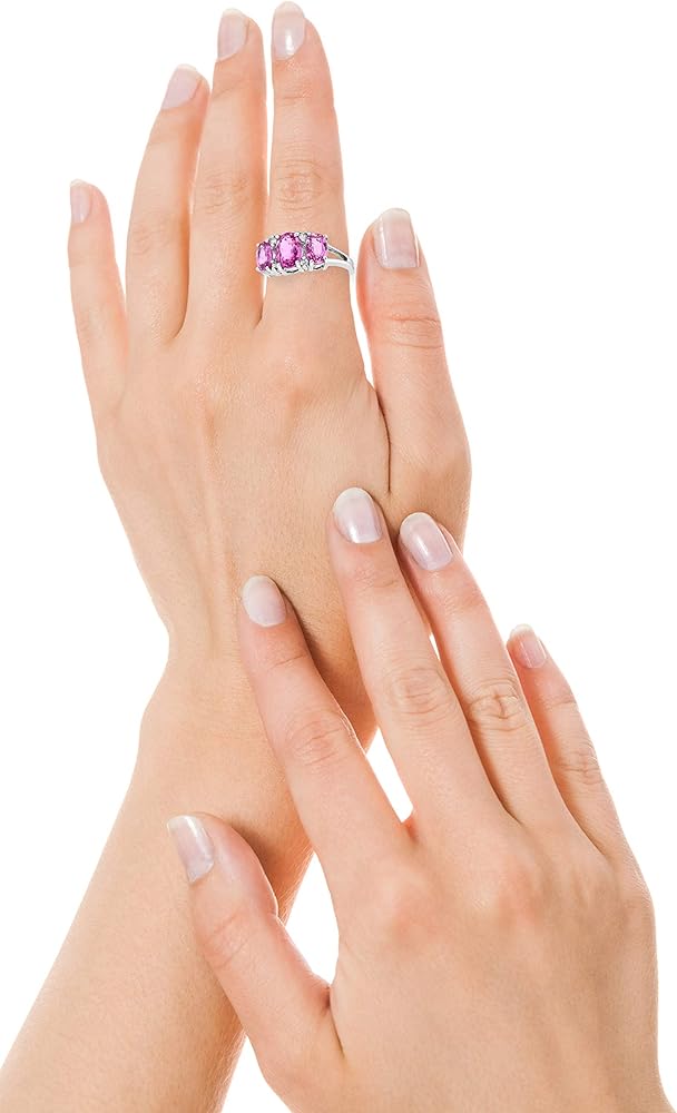التفاصيل - يتميز هذا الخاتم الأبيض عيار 14 قيراط بحجر جوهرة جوهرة من الياقوت الوردي في سبتمبر في ثلاثة الحجر الماضي والذكرى السنوية المستقبلية.