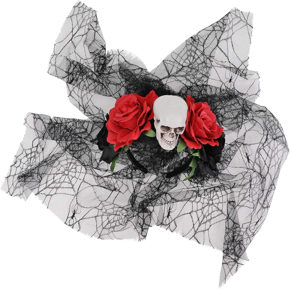 غطاء رأس تنكري للهالوين وزهور تحيط بتاج الوسط، إكسسوار مثالي للهالوين، والحفلات التنكرية، وحفلات البكالوريوس أو ليلة الخداع لتأنق البالغين والنساء والمراهقين والفتيات في خلق جو مخيف.
