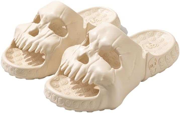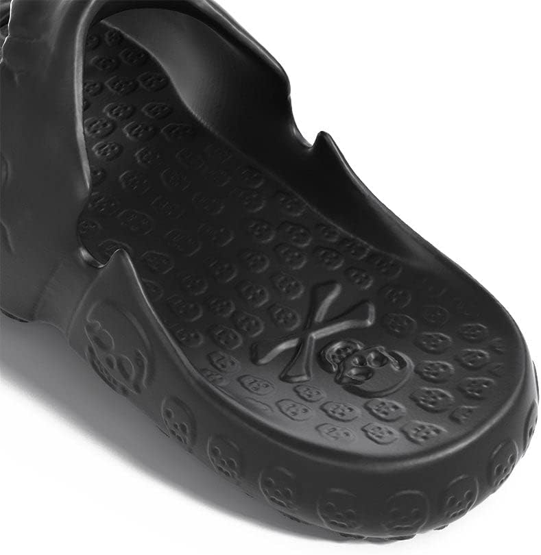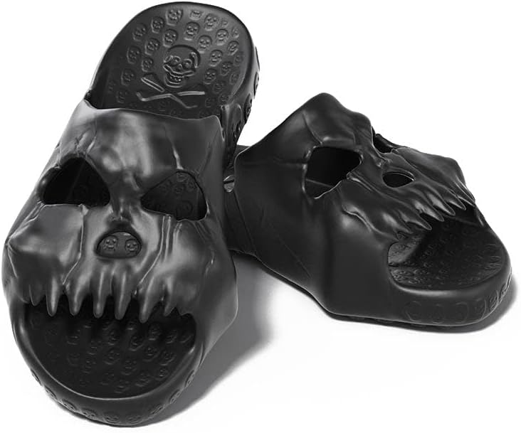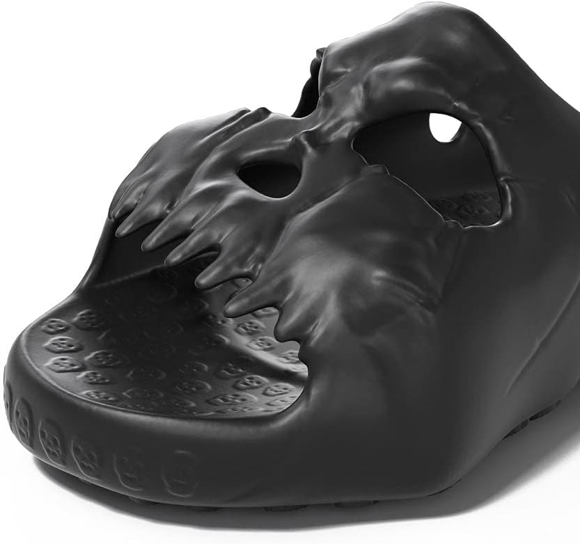 [تصميم لافت للنظر] مقدمة الحذاء الفريدة على شكل جمجمة ووسادة قدم صغيرة بنمط جمجمة تجعل هذه النعال إضافة مميزة لأي خزانة ملابس.