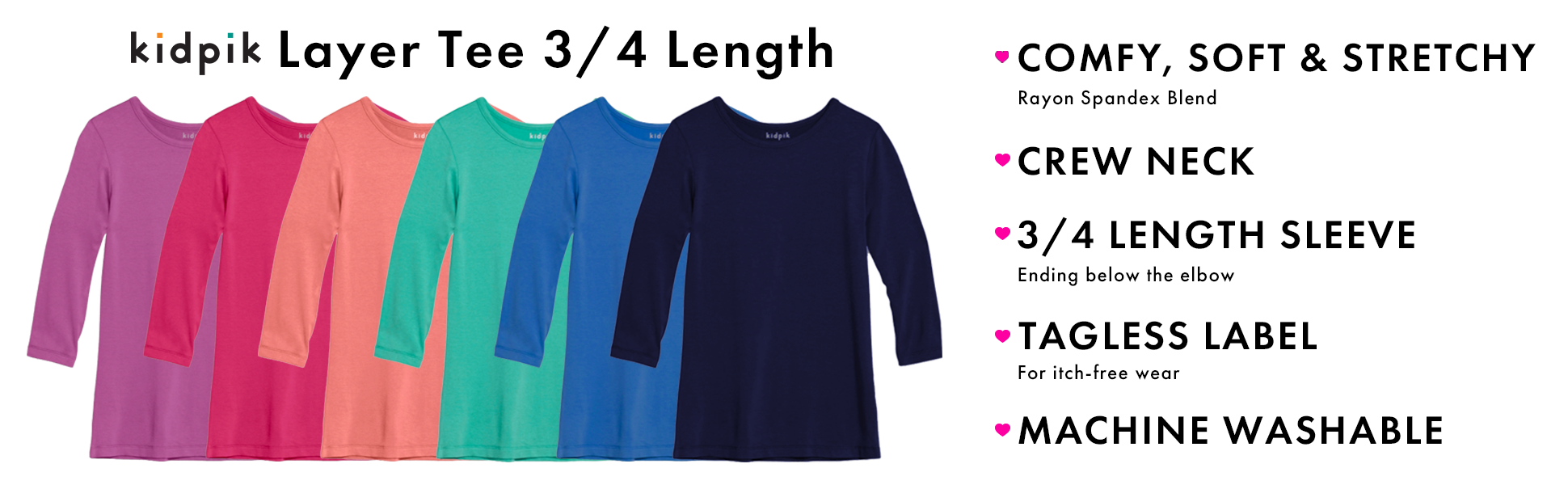 لا تأتي قمصان الفتيات أجمل من هذه التي شيرتات ذات الأكمام الطويلة المكونة من قطعتين من Kidpik. مثالية للارتداء طوال اليوم، هذه القمصان تمثل أفضل الطبقات الأساسية وستصبح سريعًا زيها المفضل في الخريف والشتاء. ارتديها تحت الملابس وفوقها مثل الفساتين والسترات والسترات الصوفية والمعاطف للحصول على ملابس كاجوال لطيفة مثالية.