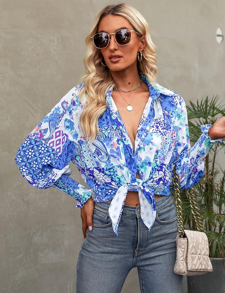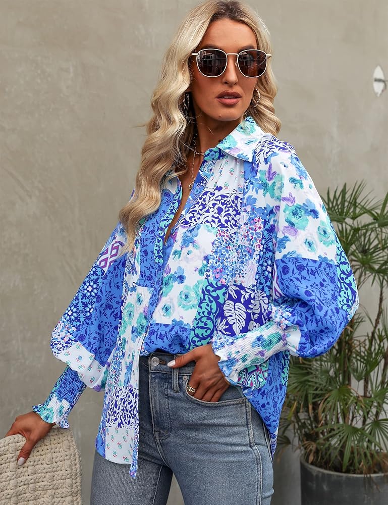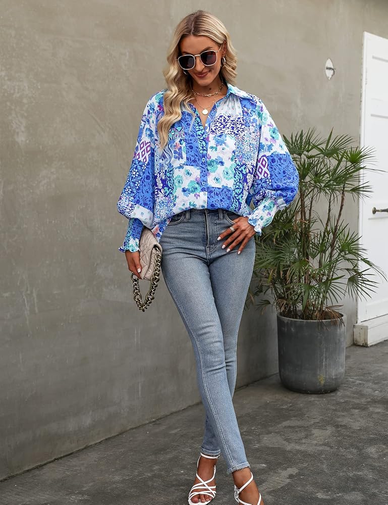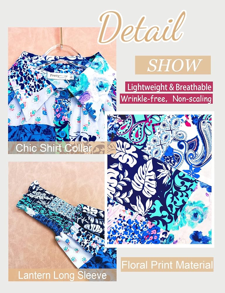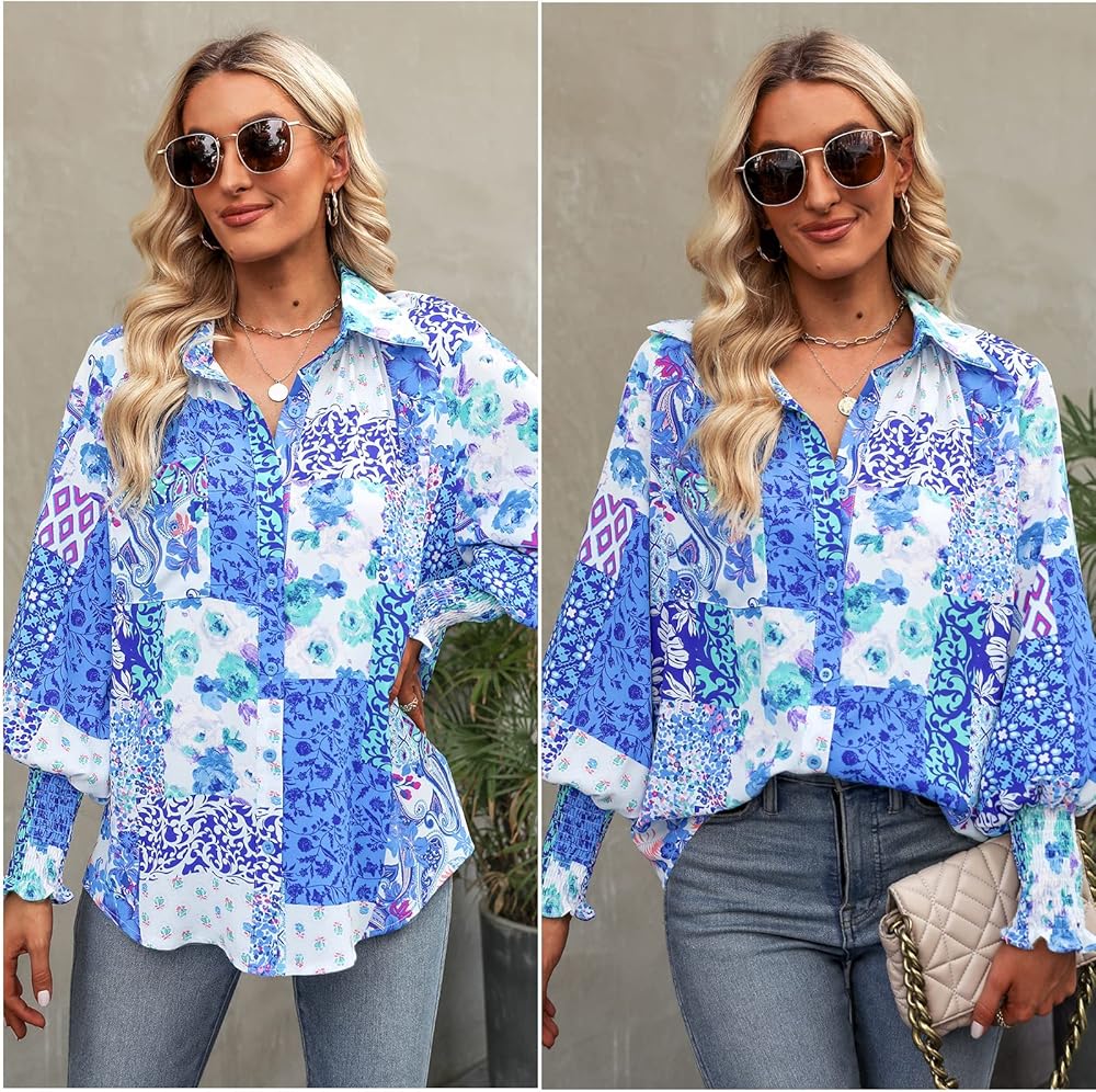 ✿ المزايا: تصميم قميص بأزرار سفلية مع طباعة تجريدية فريدة من نوعها، وأساور أكمام مدخنة، وأكمام طويلة، وياقة قميص، وجيب أمامي، ومقاس كبير الحجم، يمنح مظهرًا أنيقًا