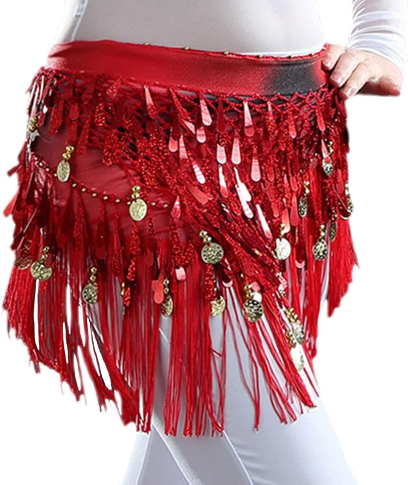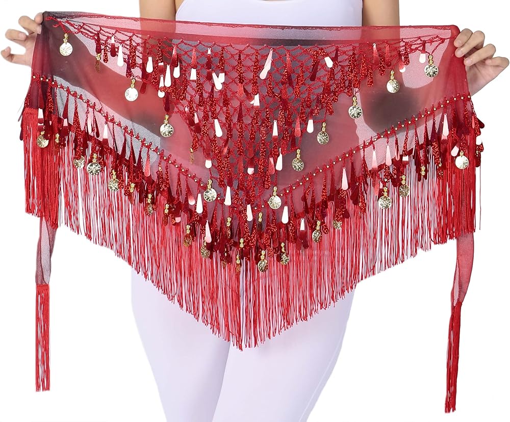 صناعة صبغ التعادل: ألوان جميلة متغيرة. وشاح الورك الراقص للبطن مزين أيضًا بالترتر اللامع والشراشيب والعملات الذهبية، مما يصدر صوتًا واضحًا عند الرقص.