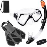 【مجموعة غطس كاملة ممتازة】تحتوي مجموعة الغطس الكل في واحد من OMGear على كل ما تحتاجه للغطس أو السباحة أو الغوص الحر أو مغامرة الغوص. تشتمل معدات الغطس على قناع غطس عالي الأداء مع رؤية بانورامية واسعة، غطس جاف لسهولة الغطس التنفس، زوج من زعانف الغوص المرنة القابلة للتعديل للدفع، قطعة واحدة من غطاء حزام قناع النيوبرين وحقيبة شبكية ممتازة لتعبئة حزمة الغطس بأكملها.
