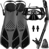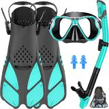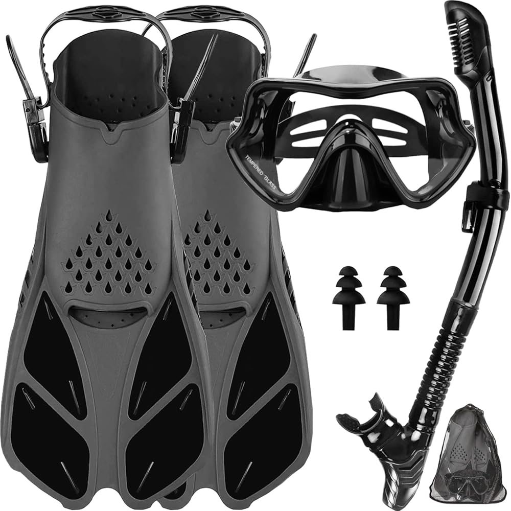 🏊 مجموعة أقنعة احترافية للغطس للبالغين - حقيبة واحدة سريعة الجفاف تحتوي على زعانف سباحة قابلة للتعديل، ونظارات سباحة مع غطاء للأنف، وأنبوب تنفس من السيليكون العلوي الجاف، وزوج من سدادات الأذن لتلبية جميع احتياجاتك للغطس والسباحة والغوص الحر، الغوص، وركوب الأمواج، وأكثر من ذلك بكثير. مجموعة الغطس مناسبة جدًا للمحترفين والمبتدئين.