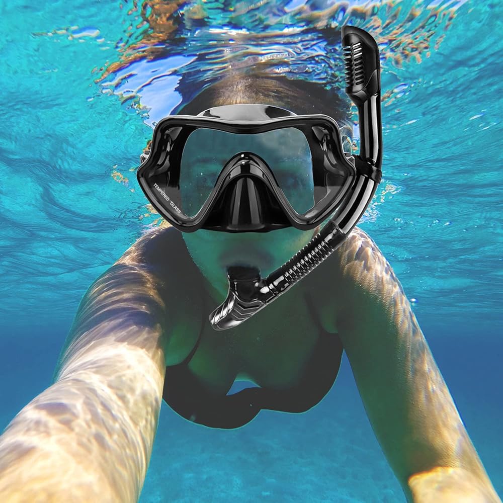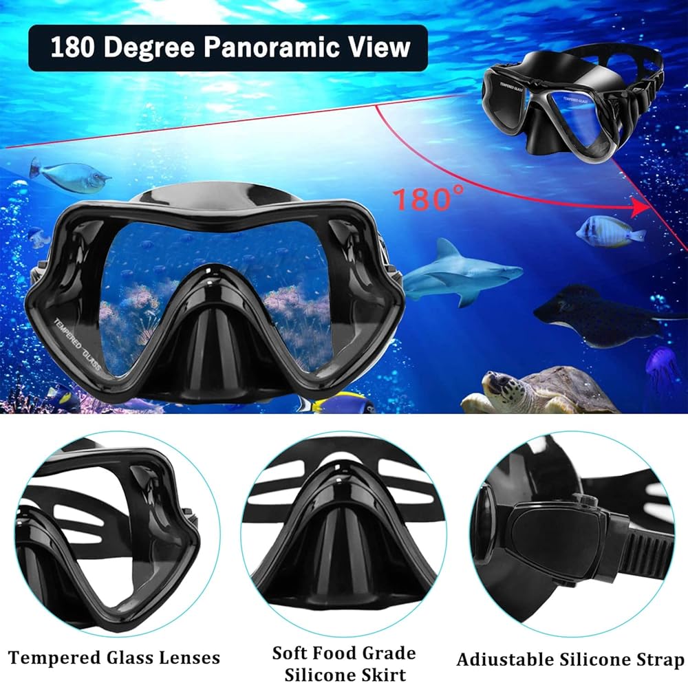 🏂 قناع غوص بانورامي مضاد للضباب - عدسة معدات الغطس مصنوعة من الزجاج المقسى مع معالجة مضادة للضباب، والتي يمكنها تحمل تأثير الأشياء الحادة وضغط المياه العميقة، السلامة أولاً. توفر مجموعة أدوات الغطس رؤية بانورامية فائقة الوضوح بزاوية 180 درجة للعالم تحت الماء مما يعني أنك ستتمتع بتجربة واضحة تمامًا تحت الماء. يمكن للتنورة المصنوعة من السيليكون الناعم أن تناسب تمامًا أشكال الوجه المختلفة لتشكيل ختم كامل مانع للماء، دون الشعور بعدم الراحة.