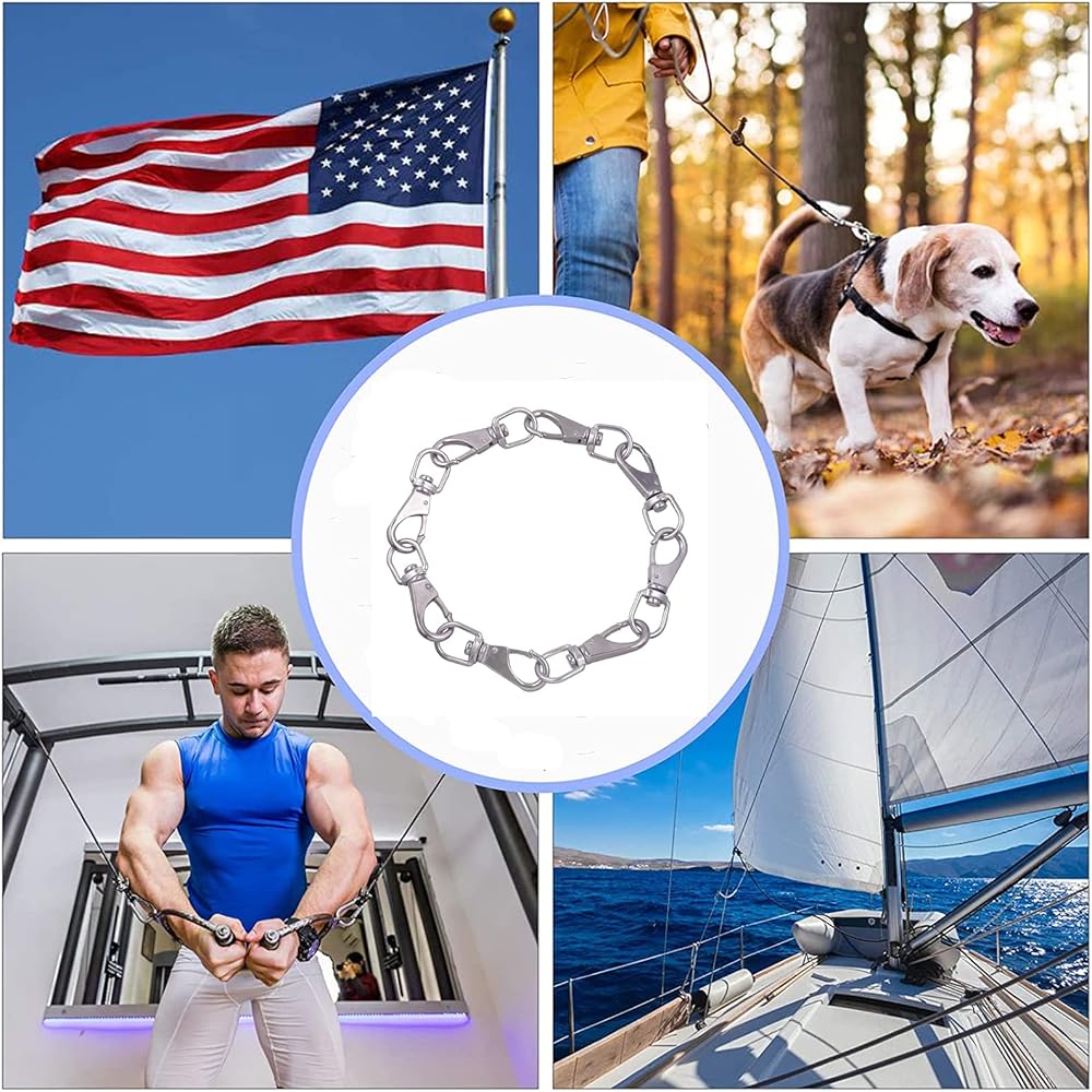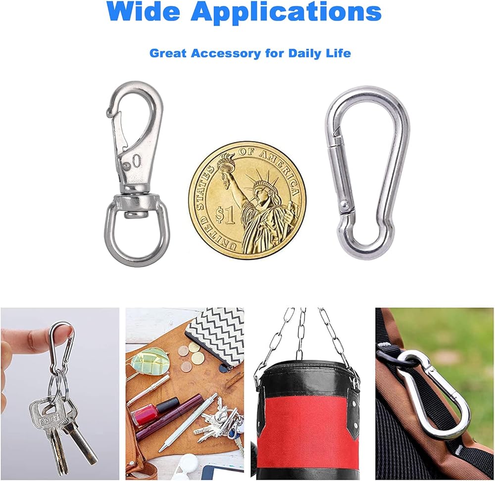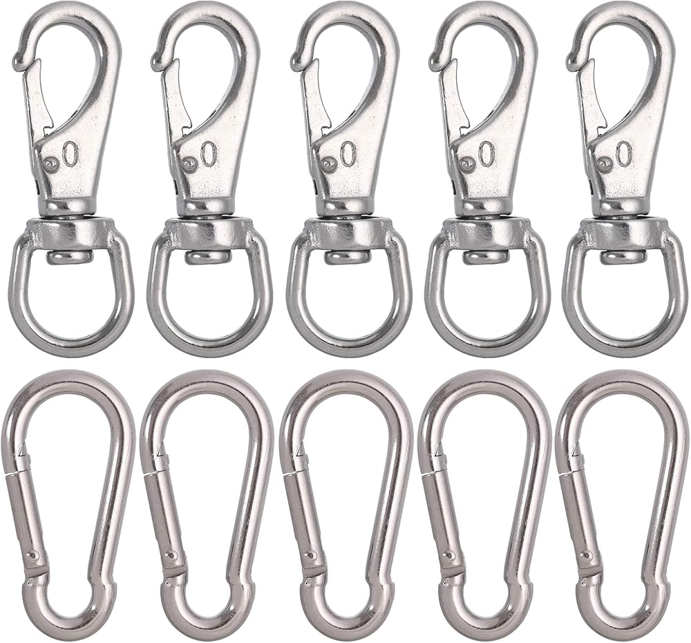 Mixiflor 5 قطع من الفولاذ المقاوم للصدأ دوارة على شكل خطاف للعلم، مع 5 قطع من مشابك الغوص ذات الخطاف المفاجئ وخطافات زنبركية لمغذيات الطيور وسلاسل الحيوانات الأليفة وكابل ربط الكلاب وسلاسل المفاتيح والمزيد