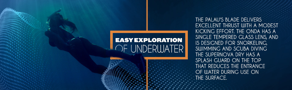 • تشتمل مجموعة Palau على زعانف Palau الطويلة القابلة للتعديل وقناع Onda وأنبوب التنفس Supernova Dry. تعتبر مجموعة Palau مثالية لعشاق الرياضات المائية النشطة.