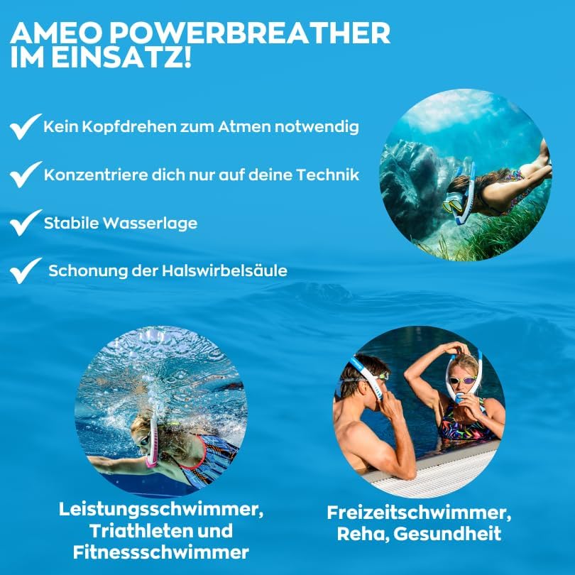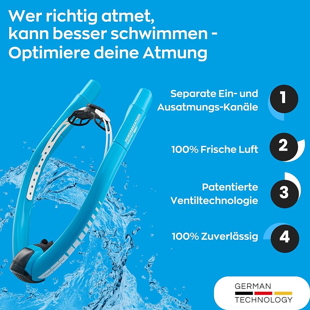 يعمل جهاز التنفس القوي مع أي ضربة على الوجه لأسفل والزحف وضربة الصدر والفراشة وحتى الضربة الجانبية